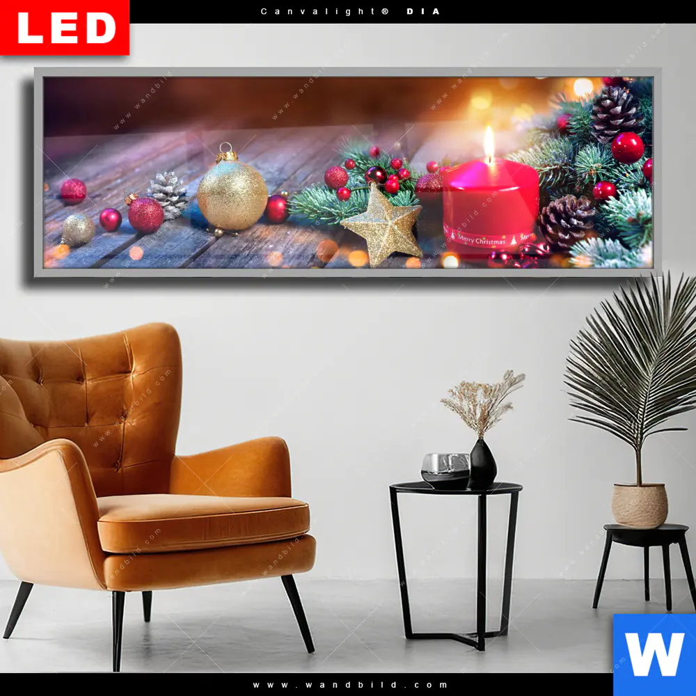 Wechselmotiv Acrylglas Canvalight® DIA | Adventskerze mit Weihnachtsschmuck | Panorama