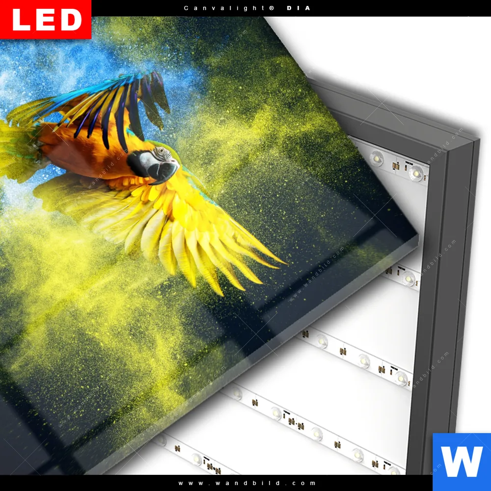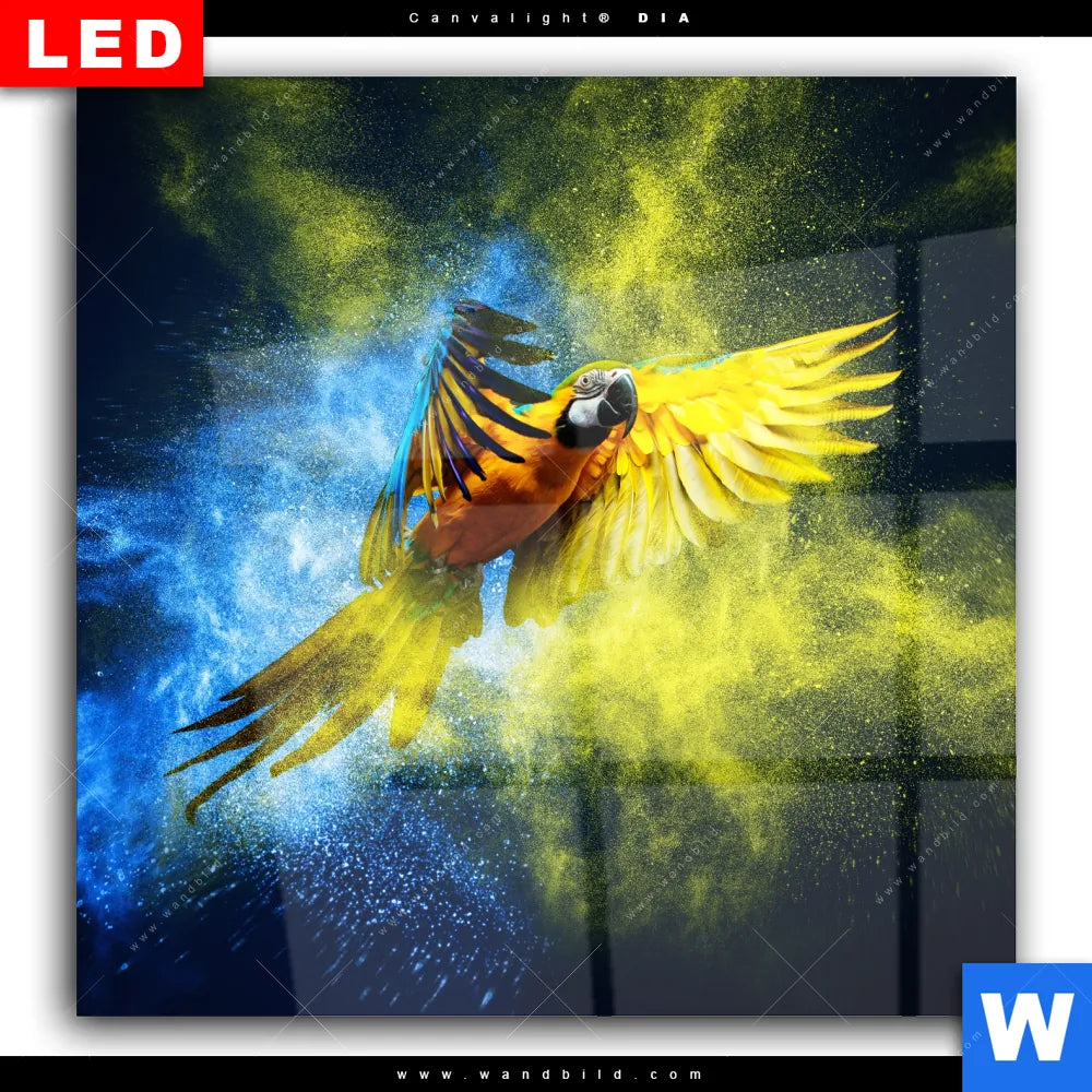 Wechselmotiv Acrylglas Canvalight® DIA | Papagei - Farbexplosion | Quadrat