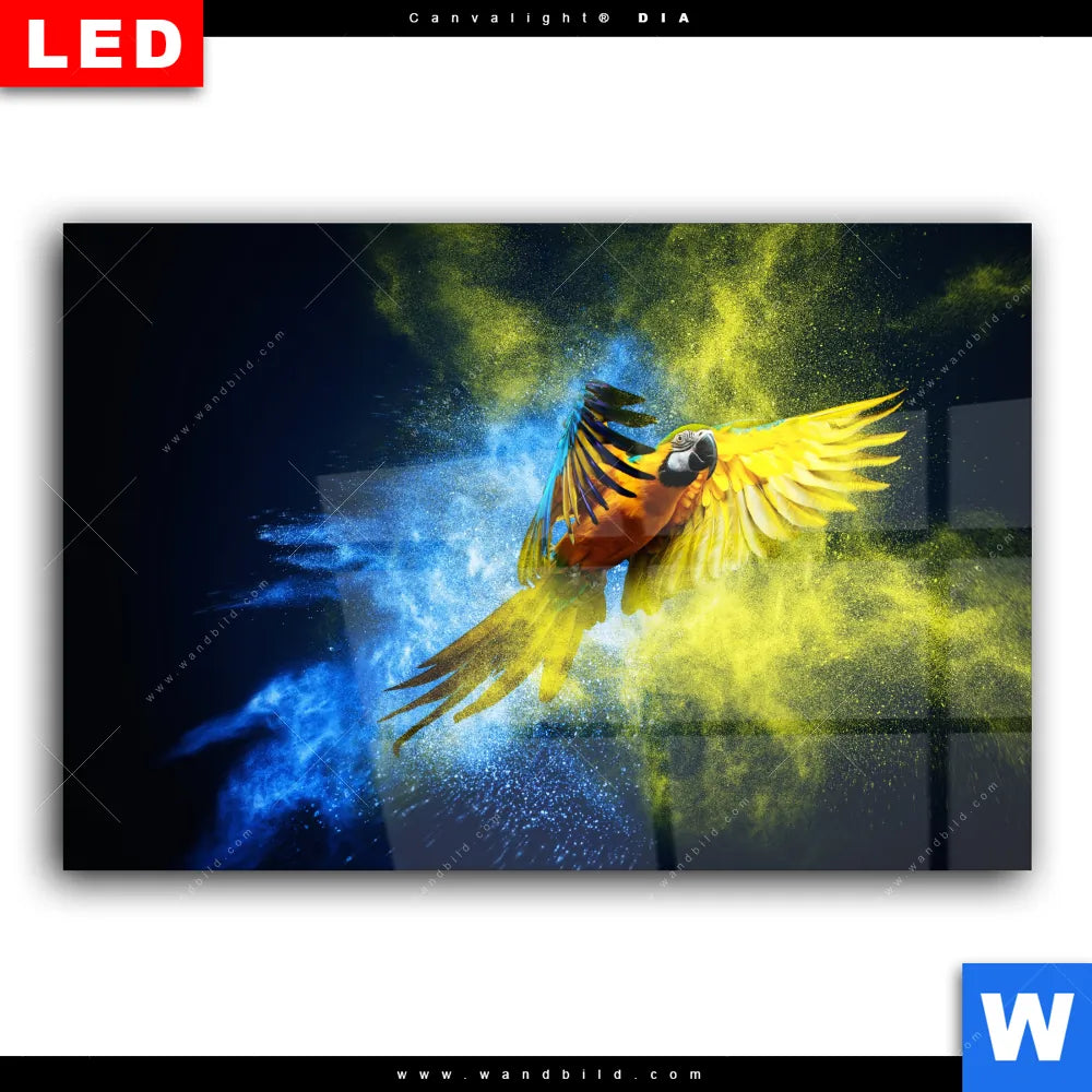 Wechselmotiv Acrylglas Canvalight® DIA | Papagei - Farbexplosion | Querformat