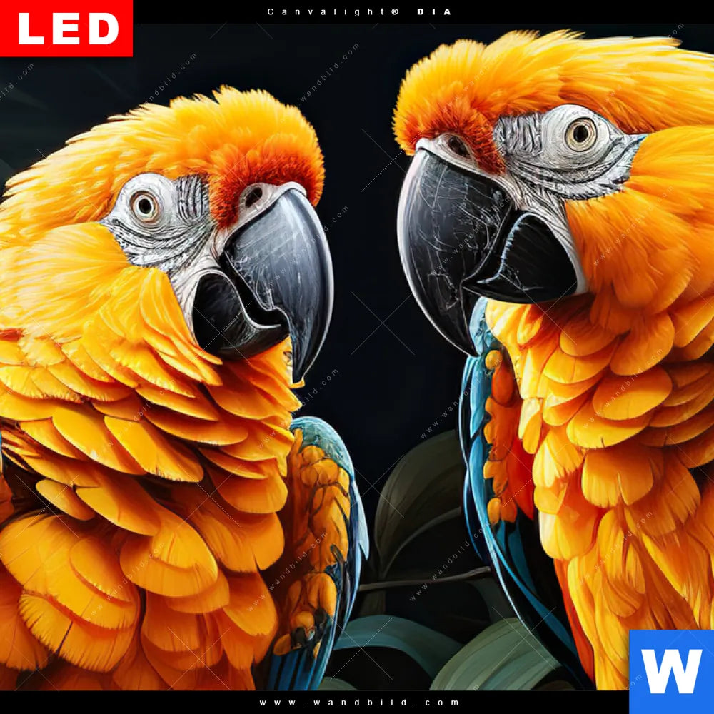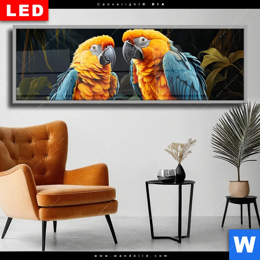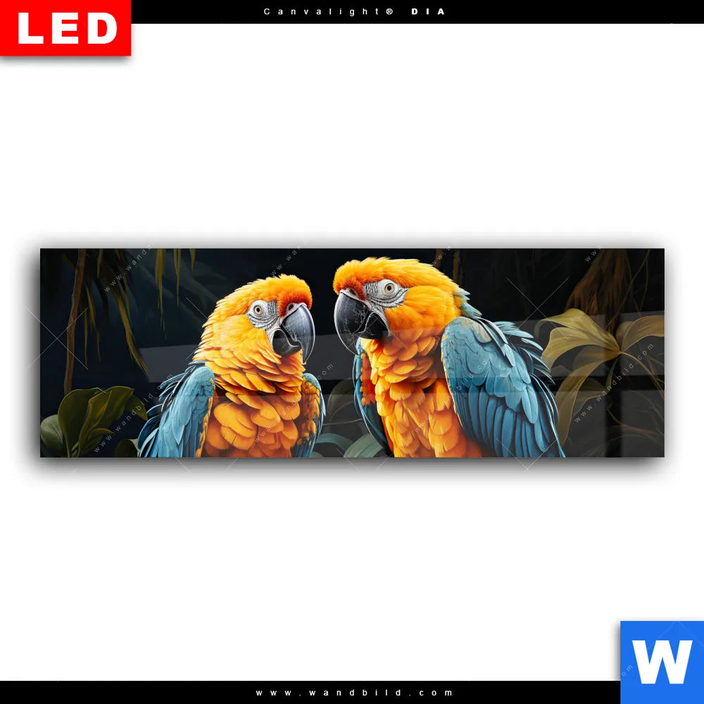 Wechselmotiv Acrylglas Canvalight® DIA | Papageien auf einem Ast | Panorama