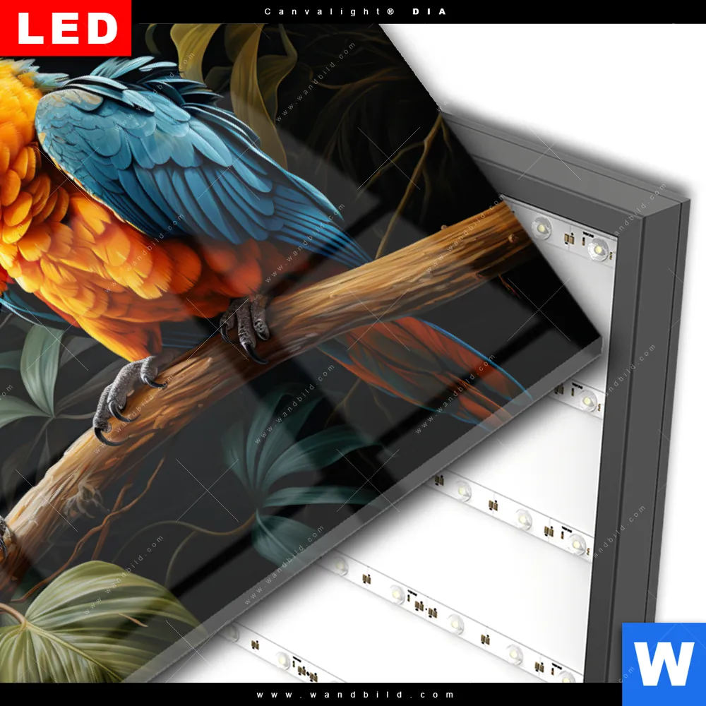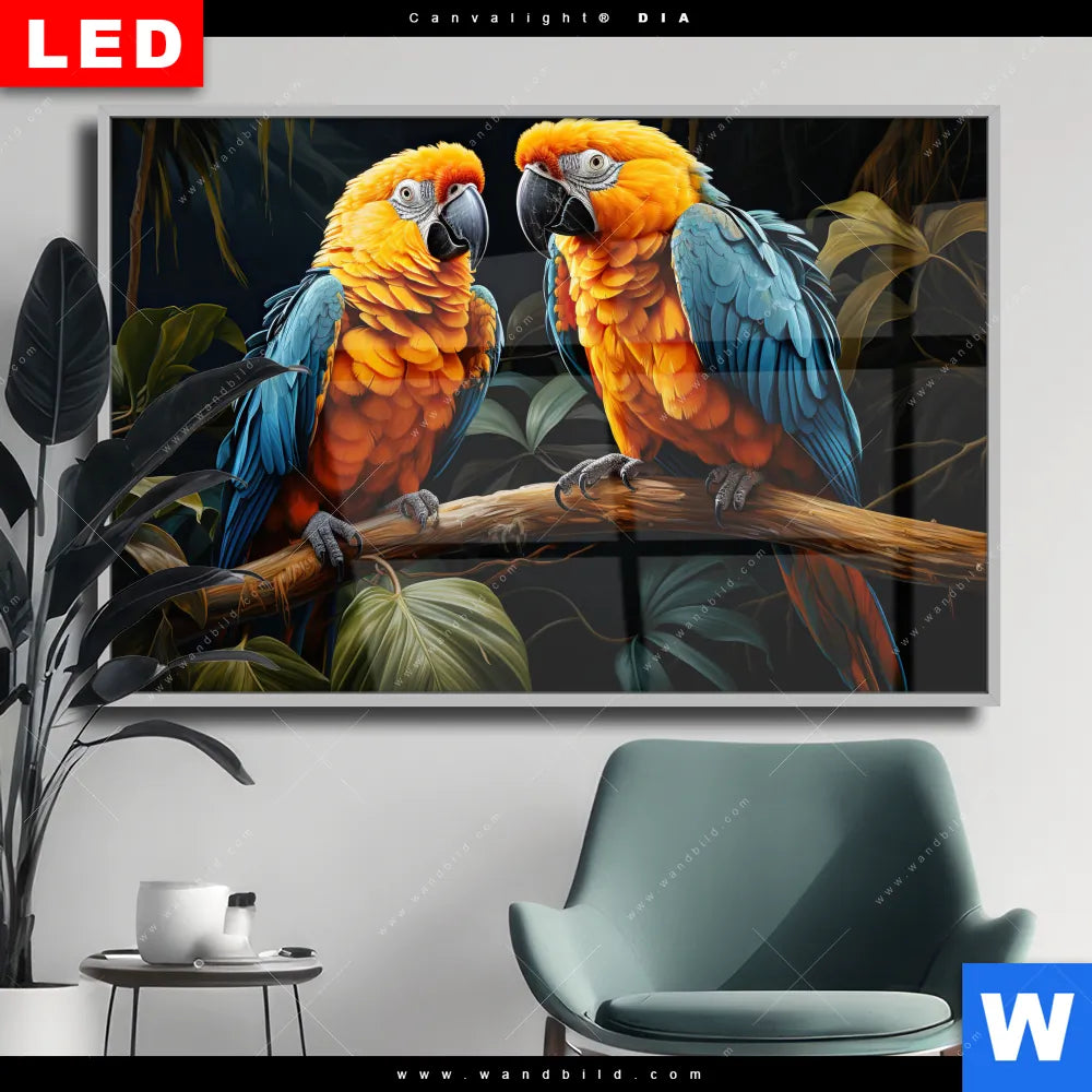 Wechselmotiv Acrylglas Canvalight® DIA | Papageien auf einem Ast | Querformat