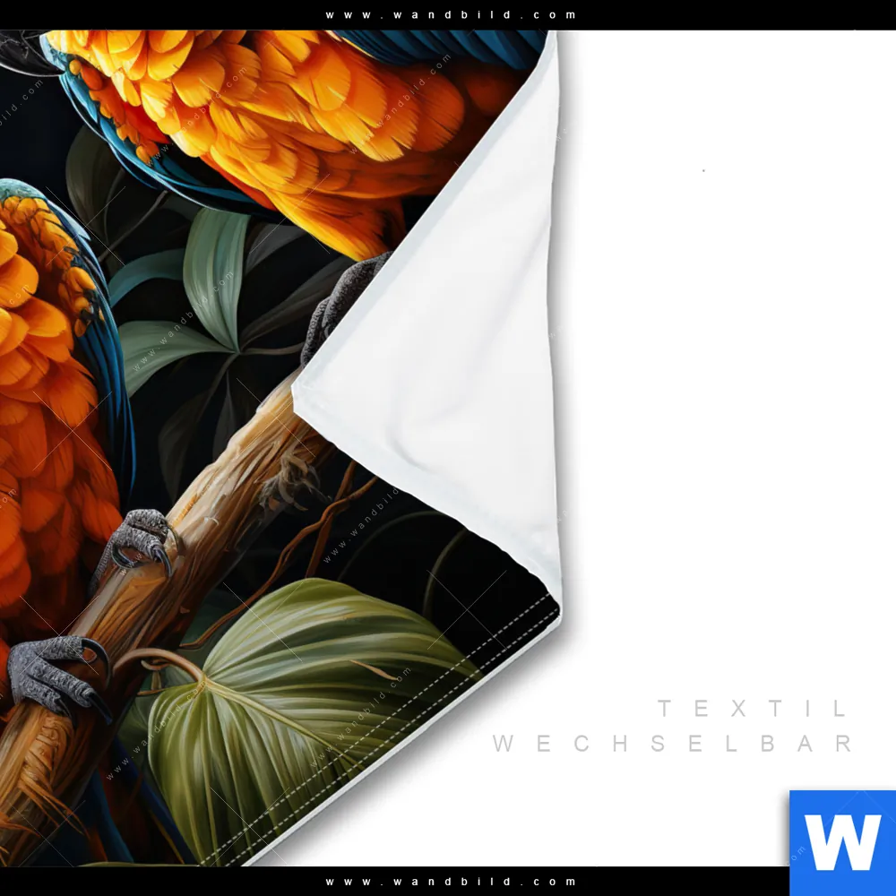 Wechselmotiv Textil | Papageien auf einem Ast | Quadrat
