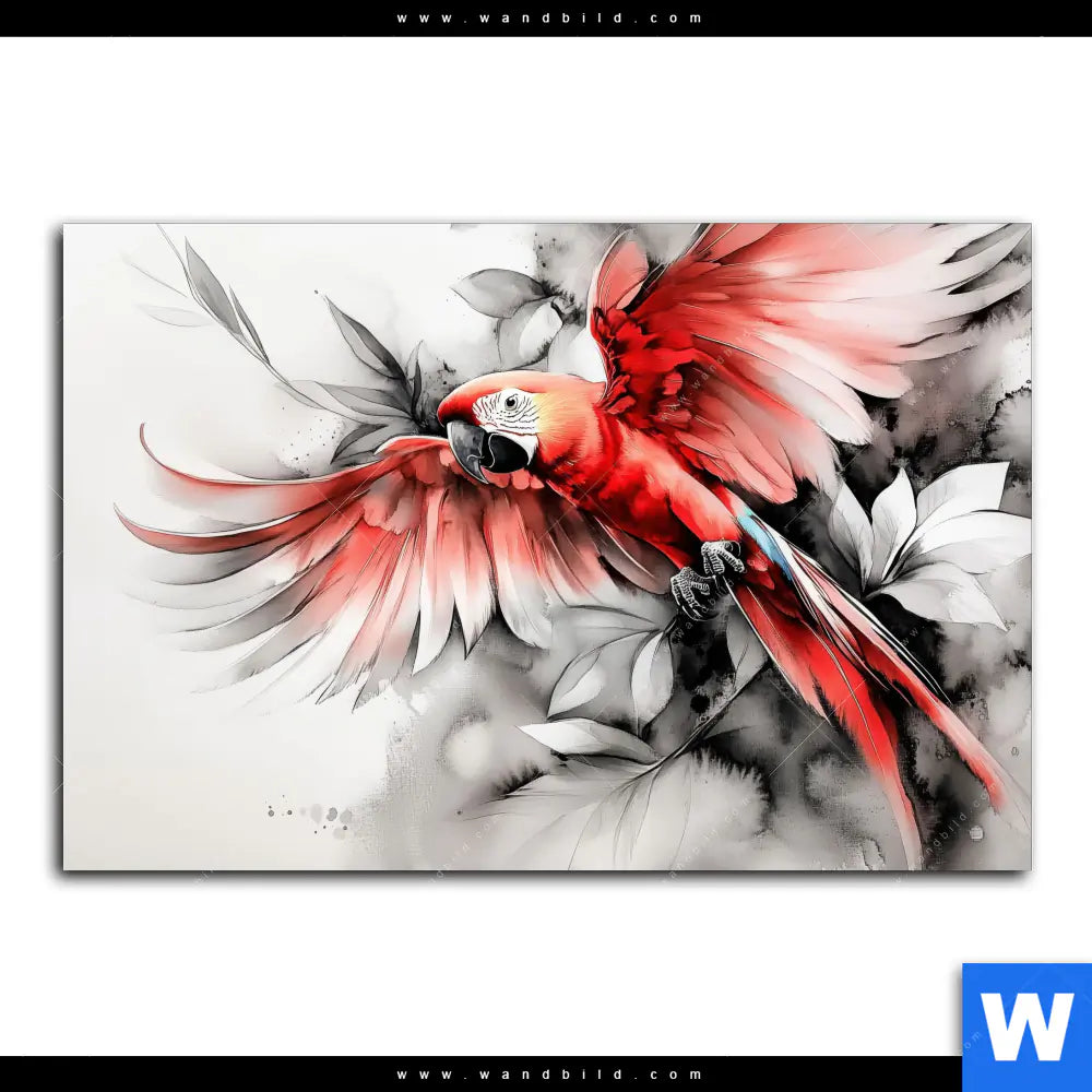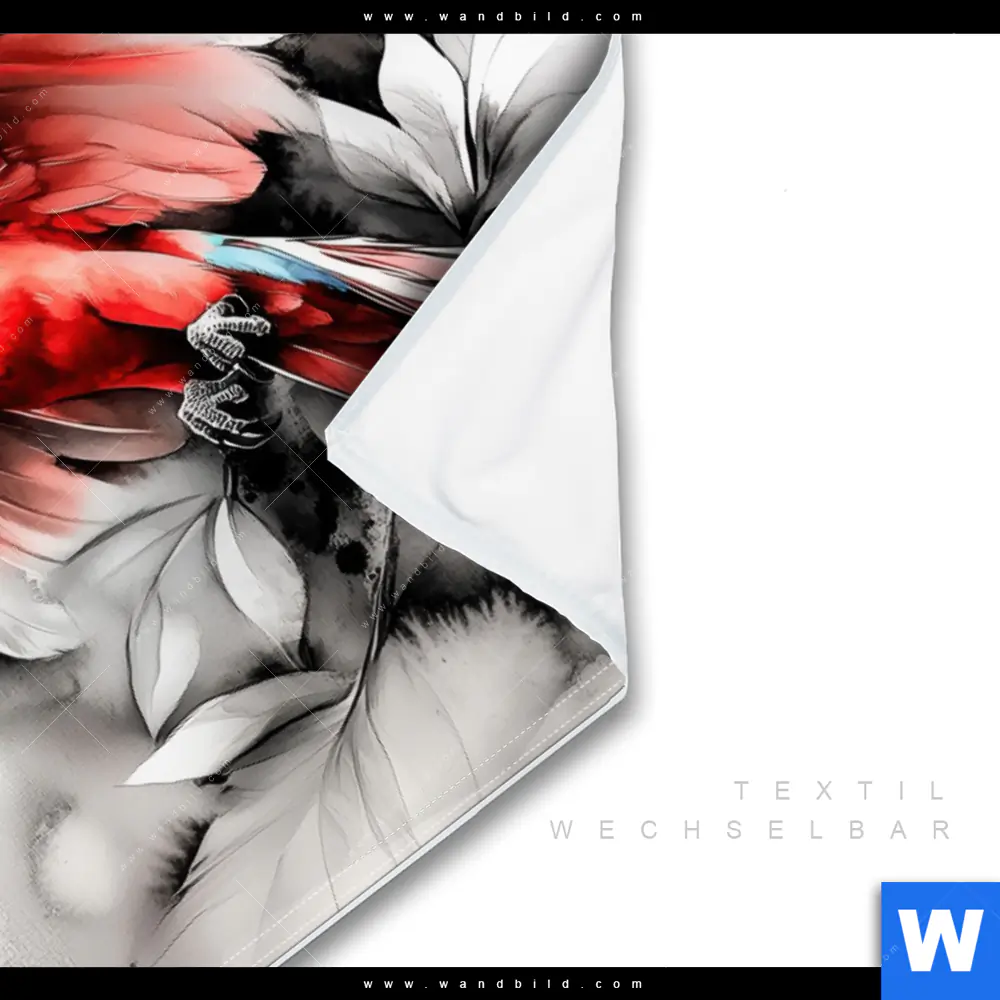 Wechselmotiv Textil | Roter Papagei im Flug | Querformat