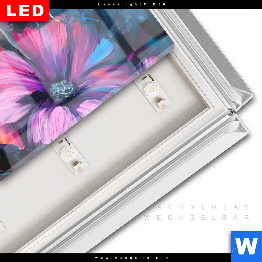LED-Glasbild mit austauschbarem Acrylglas-Druck (Wechselbild)