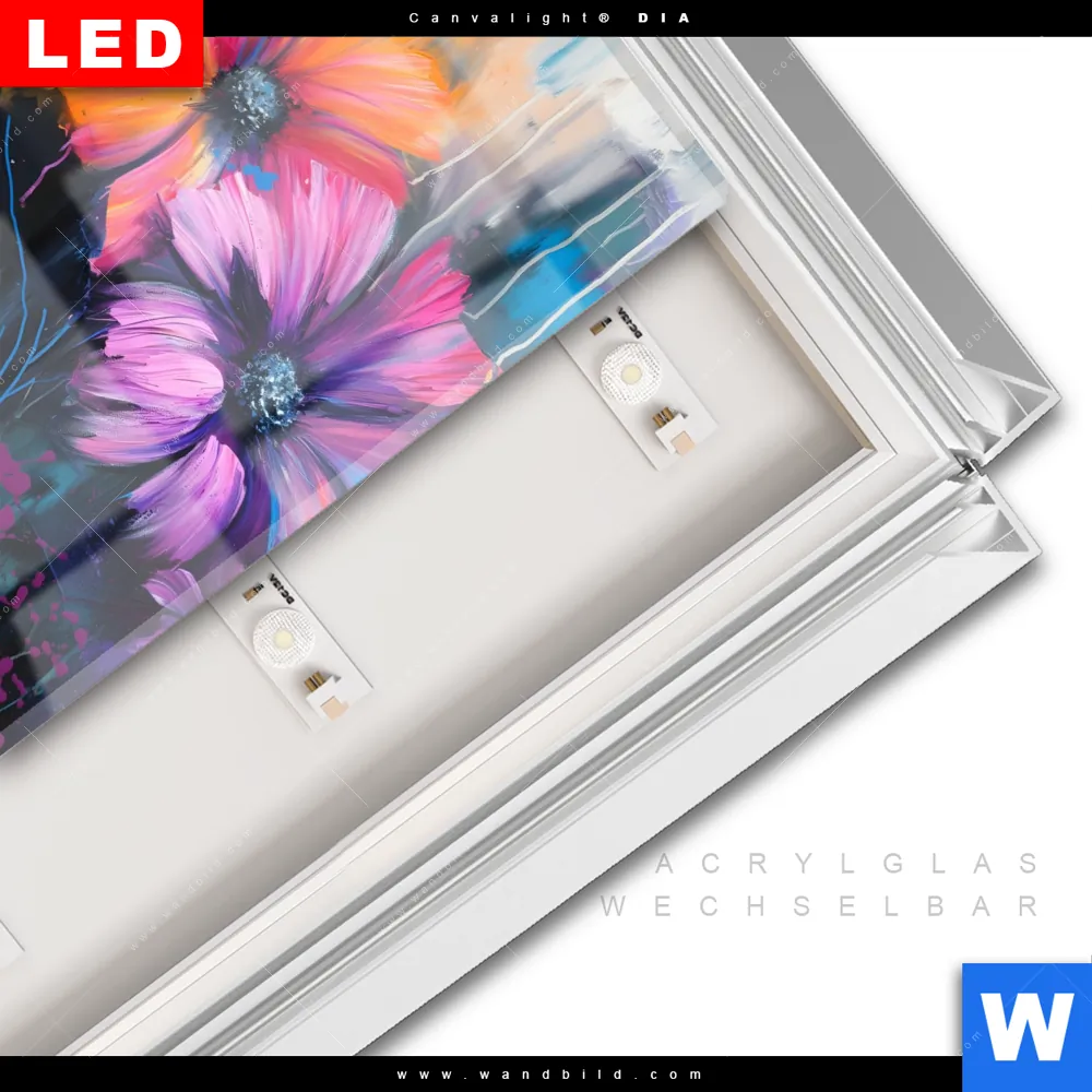 LED-Glasbild mit austauschbarem Acrylglas-Druck (Wechselbild)