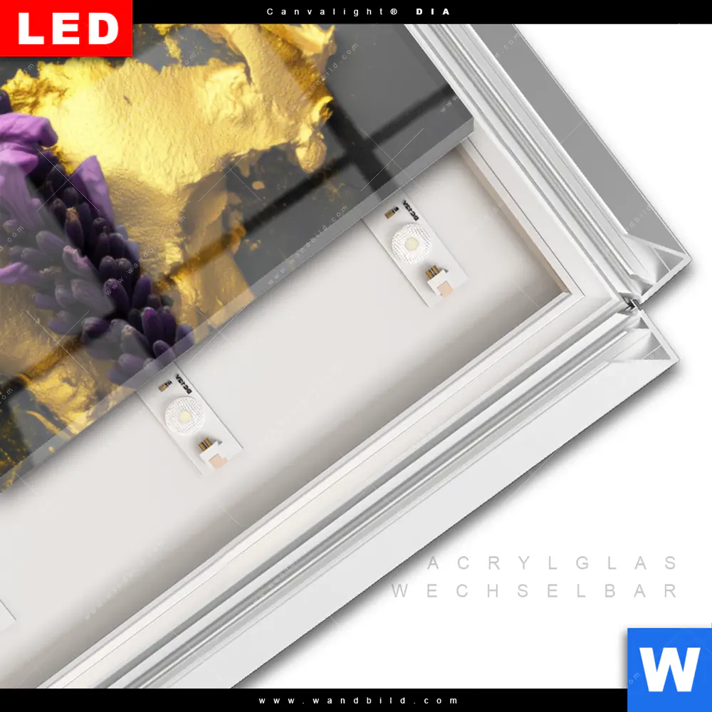 LED-Glasbild mit austauschbarem Acrylglas-Druck (Wechselbild)