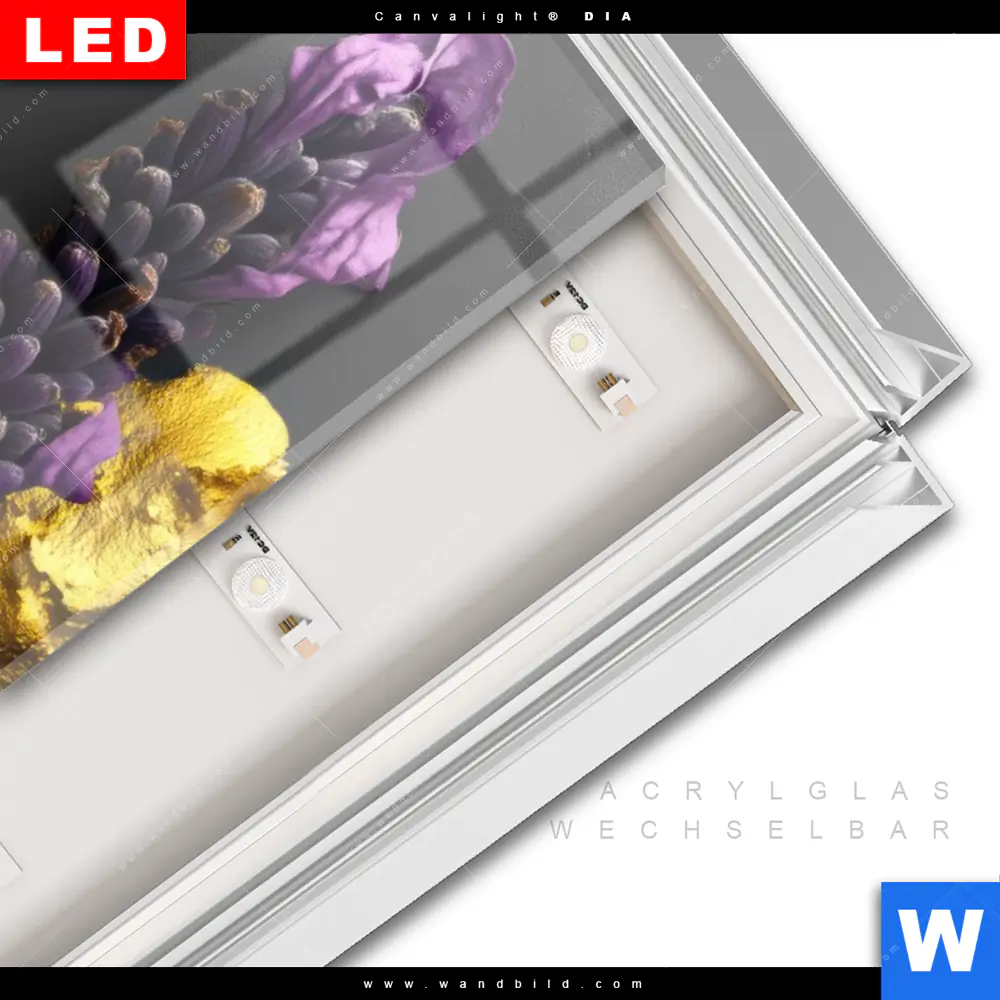 LED-Glasbild mit austauschbarem Acrylglas-Druck (Wechselbild)