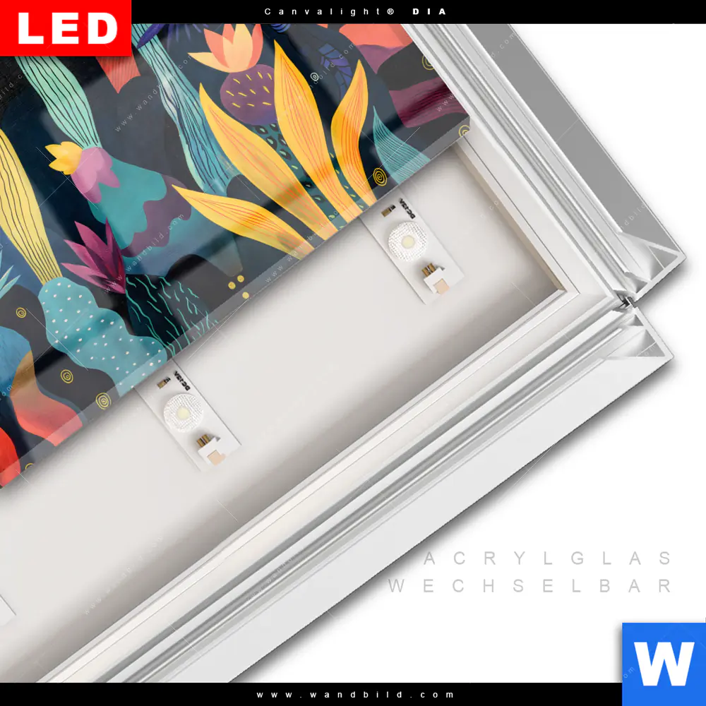 LED-Glasbild mit austauschbarem Acrylglas-Druck (Wechselbild)