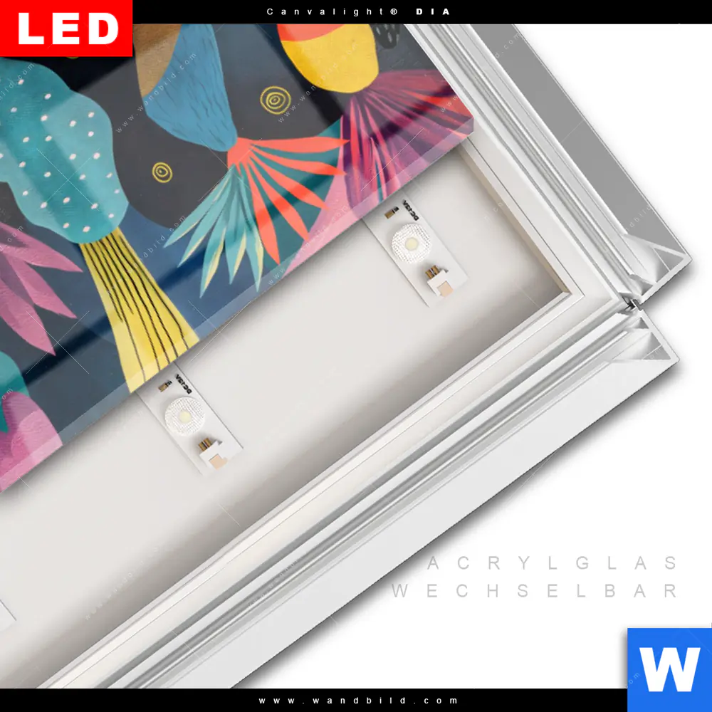 LED-Glasbild mit austauschbarem Acrylglas-Druck (Wechselbild)