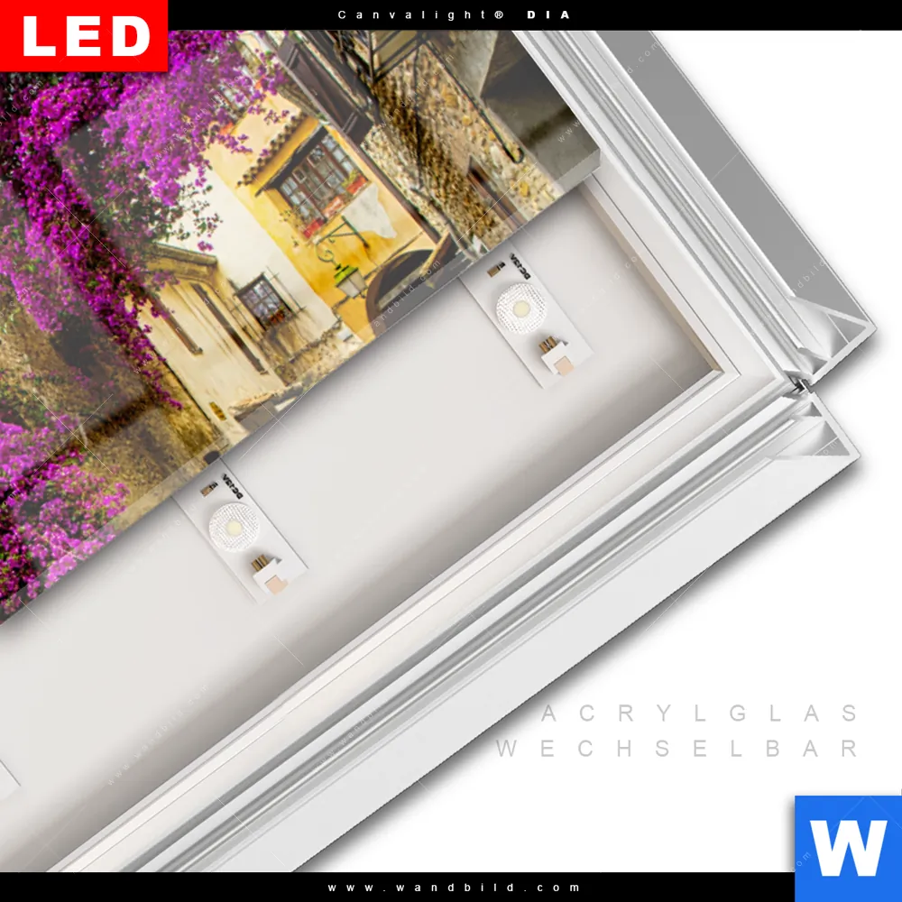 LED-Glasbild mit austauschbarem Acrylglas-Druck (Wechselbild)