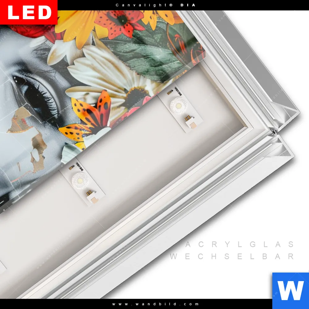 LED-Glasbild mit austauschbarem Acrylglas-Druck (Wechselbild)