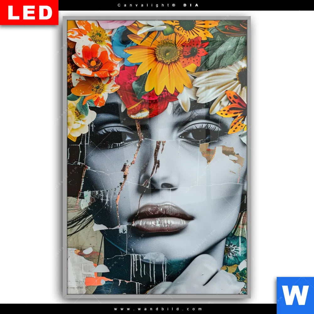 Canvalight® DIA Leuchtbild | Angelina - Frau mit Blumen im Haar | Hochformat