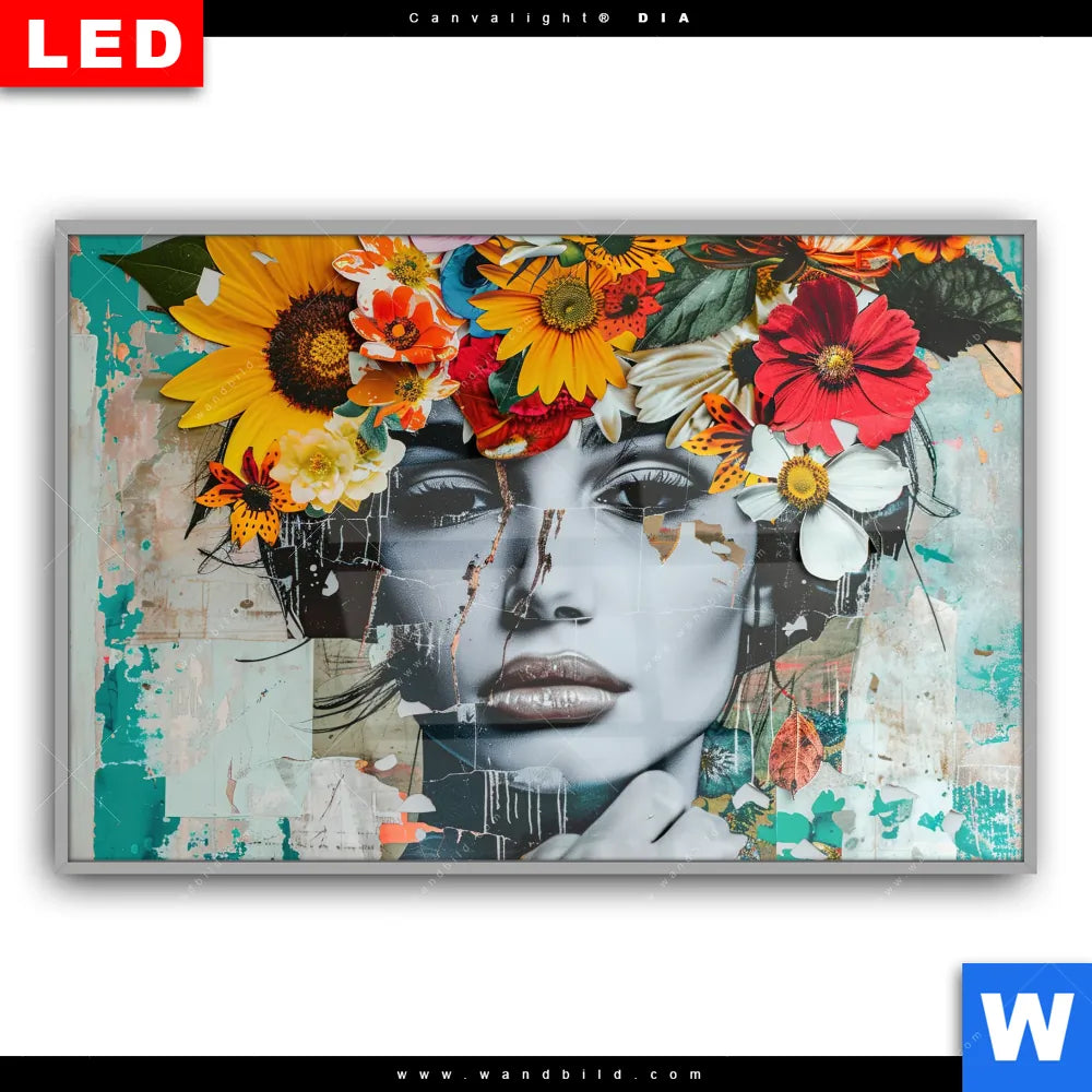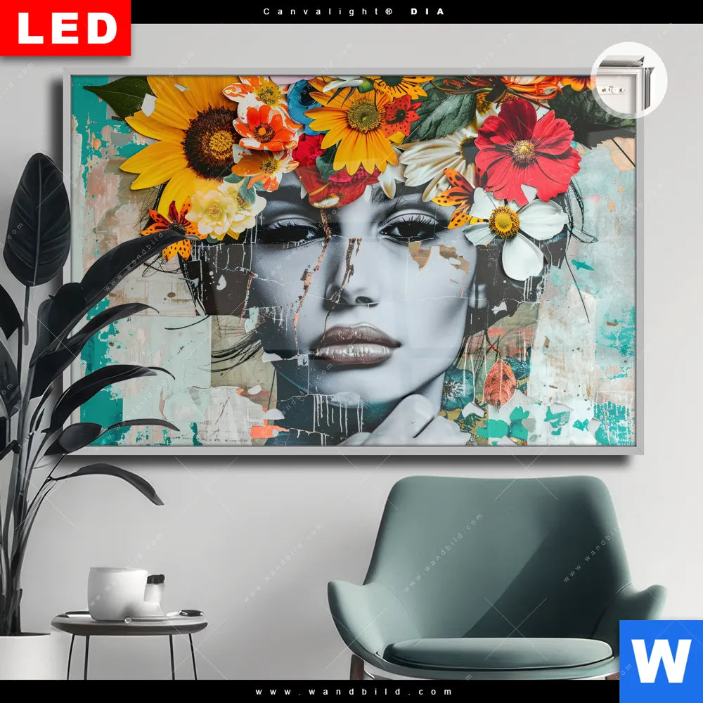Canvalight® DIA Leuchtbild | Angelina - Frau mit Blumen im Haar | Querformat