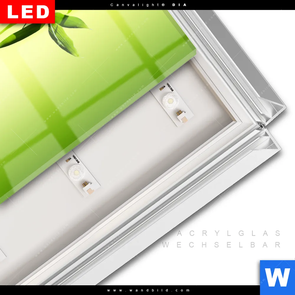LED-Glasbild mit austauschbarem Acrylglas-Druck (Wechselbild)