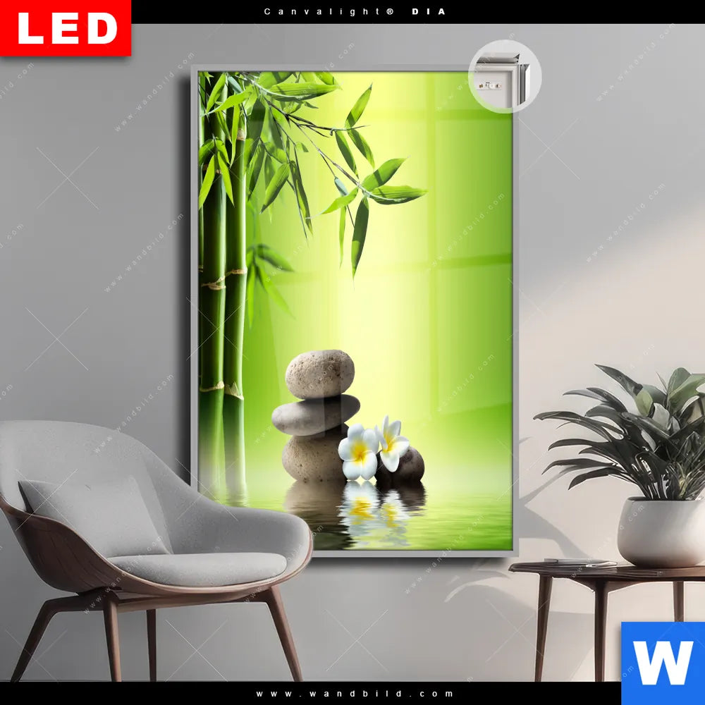 Canvalight® DIA Leuchtbild | Bambus & Steine | Hochformat