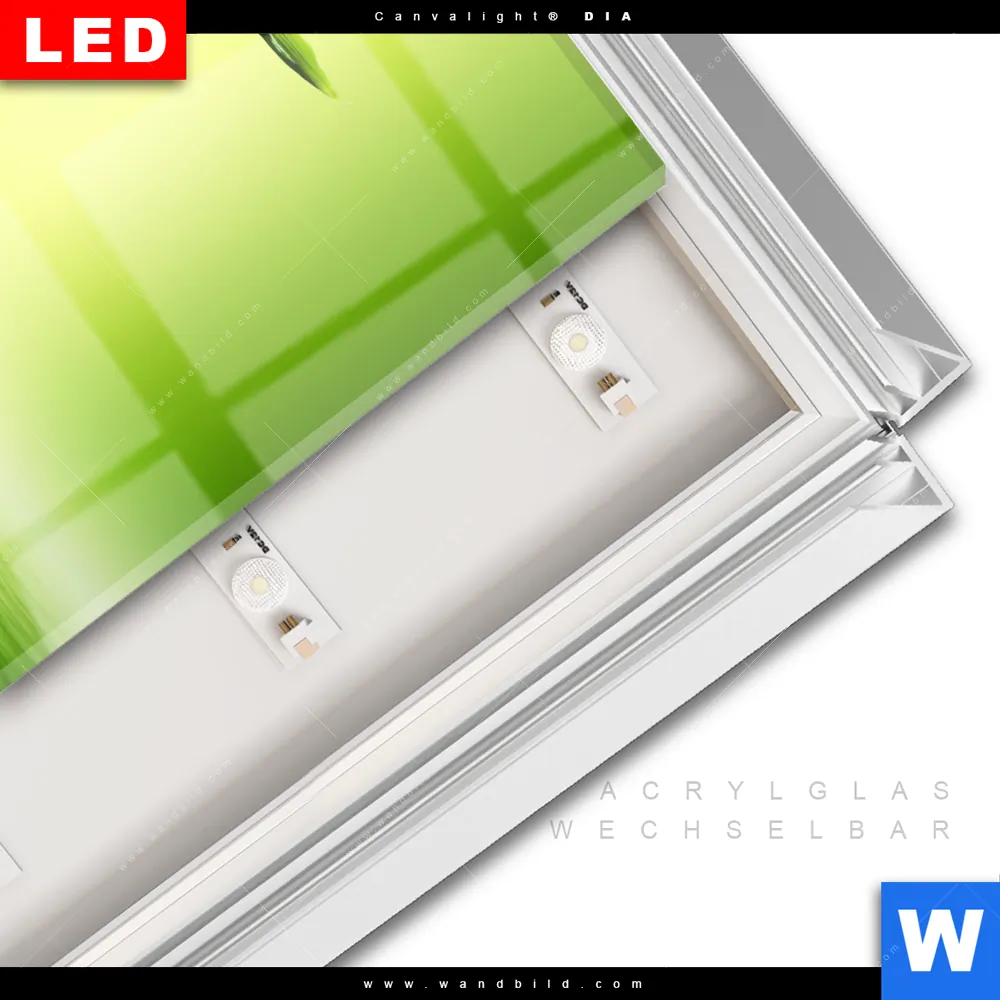LED-Glasbild mit austauschbarem Acrylglas-Druck (Wechselbild)
