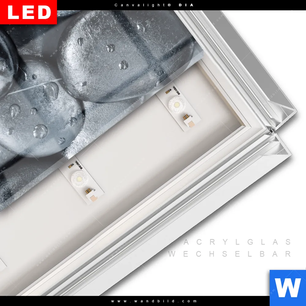 LED-Glasbild mit austauschbarem Acrylglas-Druck (Wechselbild)