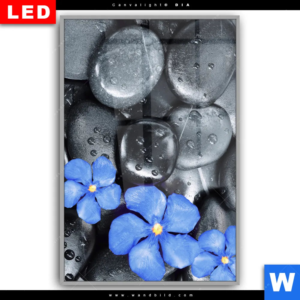 Canvalight® DIA Leuchtbild | Blaue Blume & Graue Steine | Hochformat