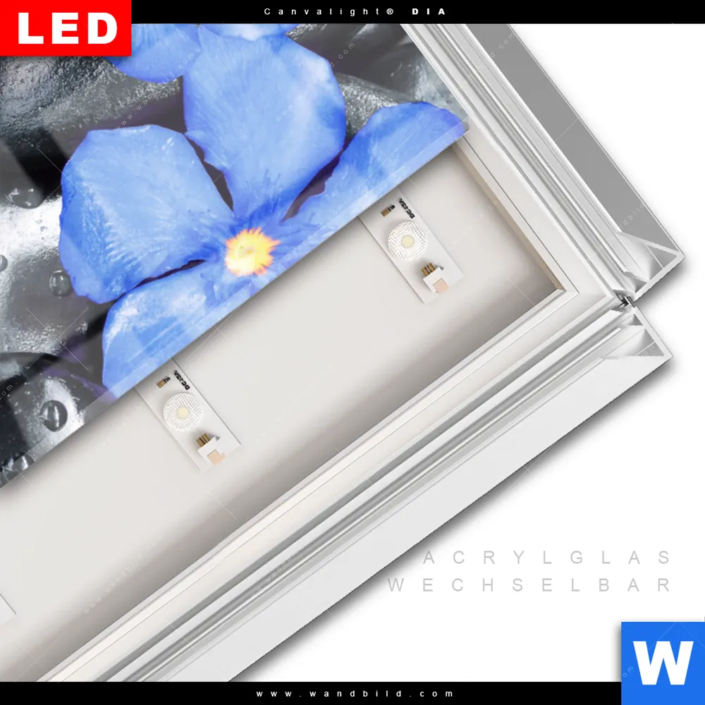 LED-Glasbild mit austauschbarem Acrylglas-Druck (Wechselbild)