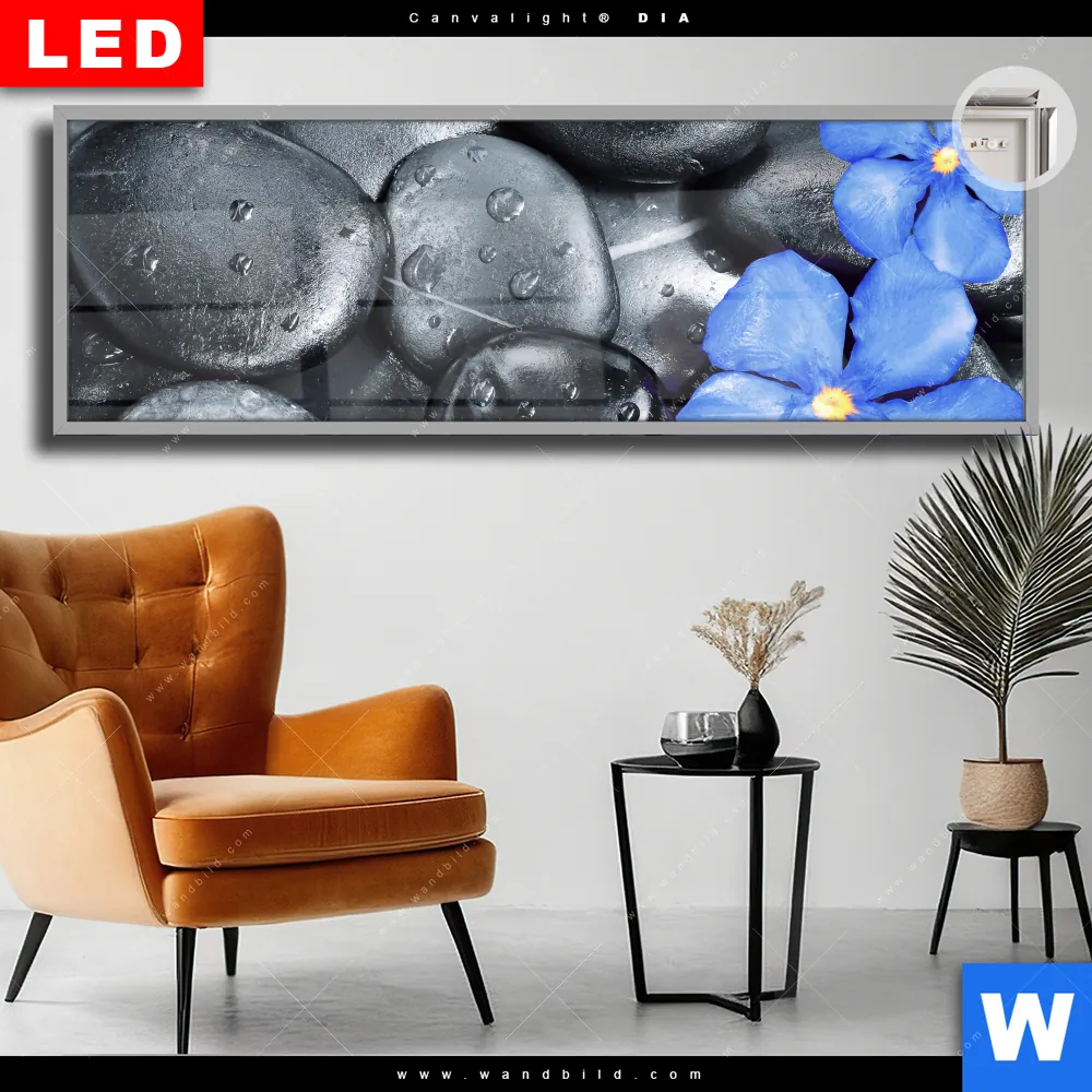 Canvalight® DIA Leuchtbild | Blaue Blume & Graue Steine | Panorama