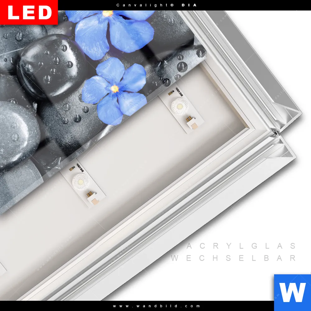 LED-Glasbild mit austauschbarem Acrylglas-Druck (Wechselbild)