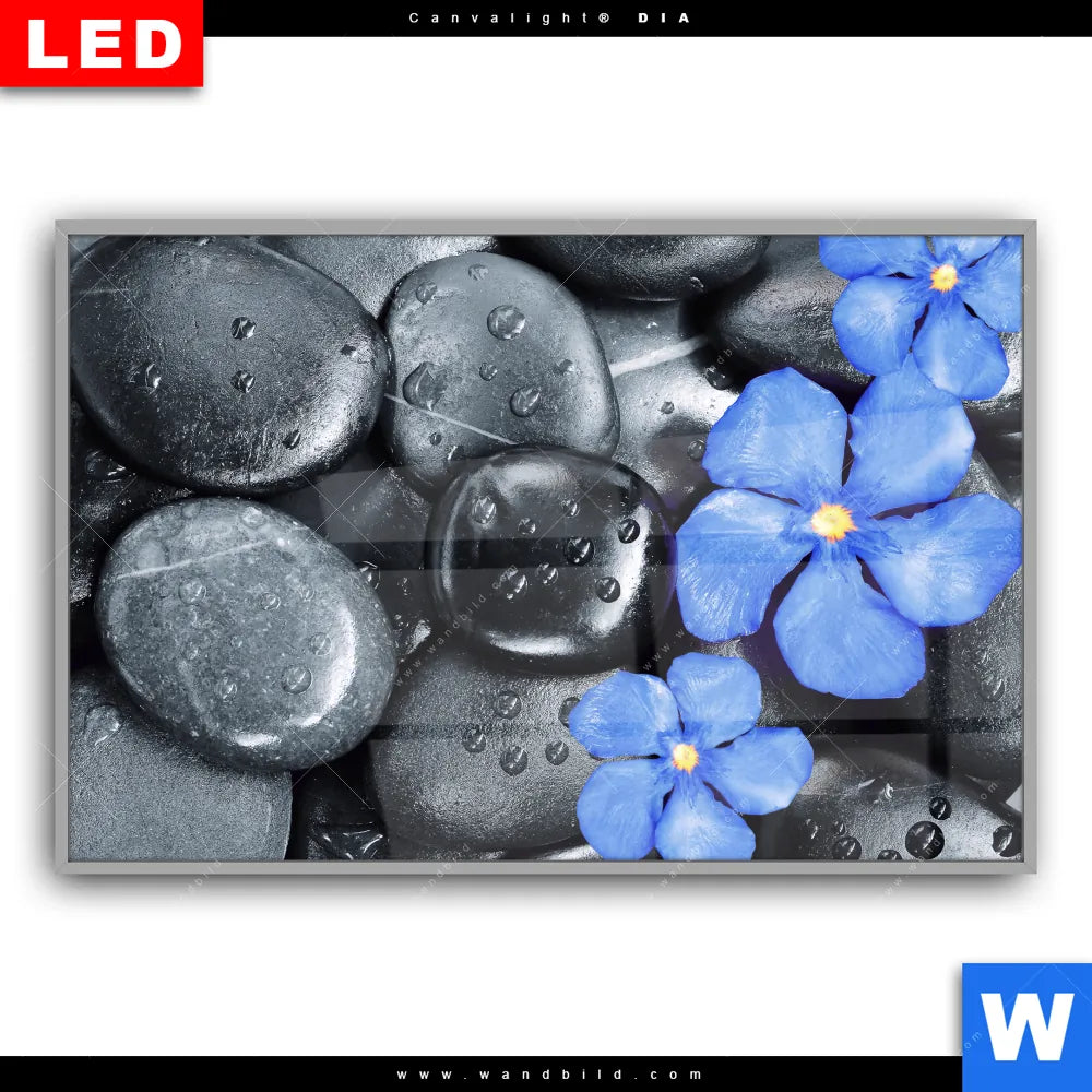 Canvalight® DIA Leuchtbild | Blaue Blume & Graue Steine | Querformat