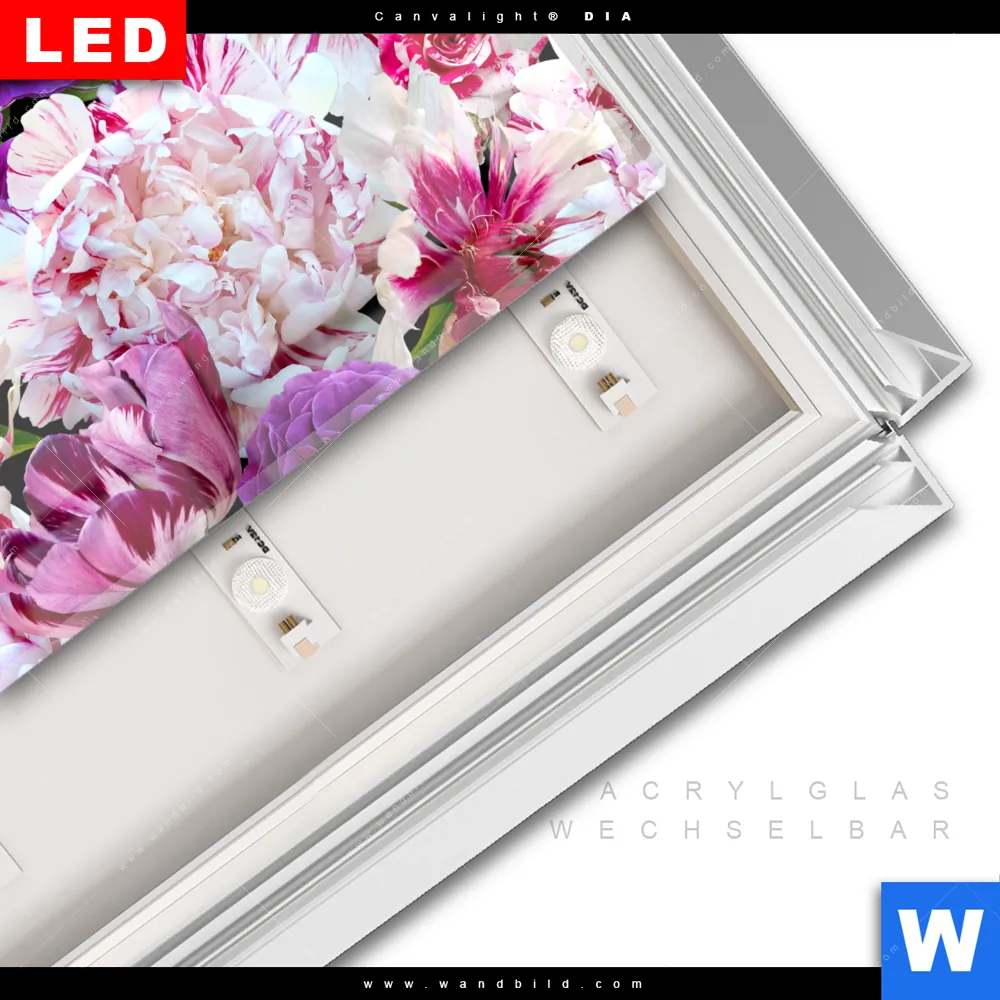 LED-Glasbild mit austauschbarem Acrylglas-Druck (Wechselbild)