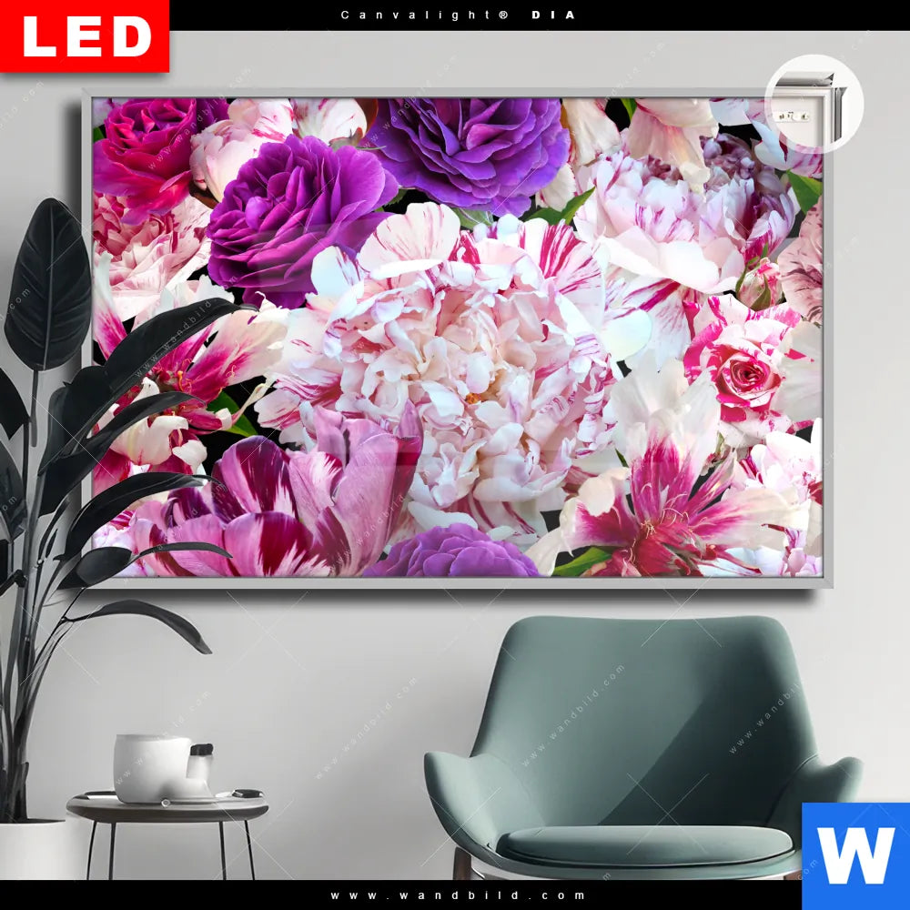 Canvalight® DIA Leuchtbild | Blühende Pfingstrosen | Querformat