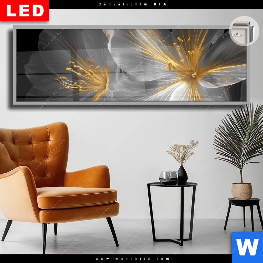 Canvalight® DIA Leuchtbild | Blüten Gold & Weiß | Panorama