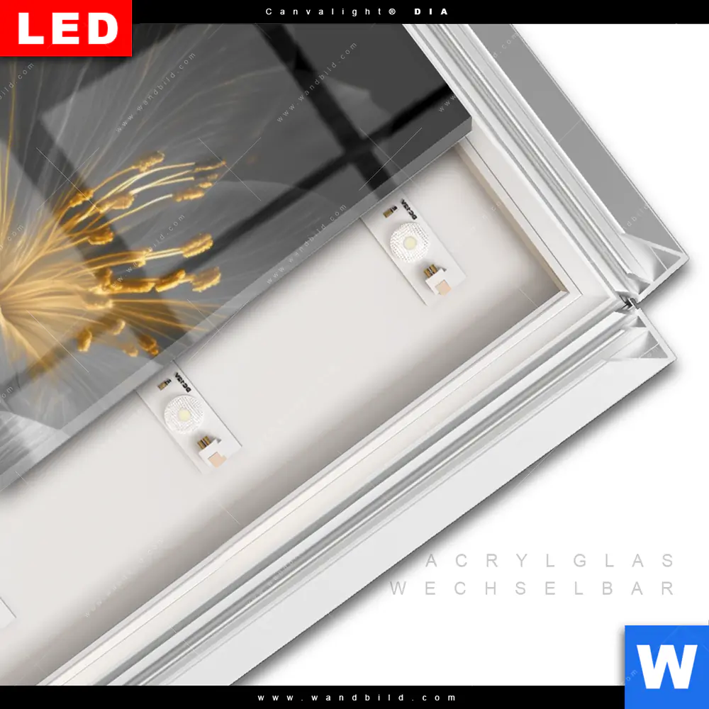 LED-Glasbild mit austauschbarem Acrylglas-Druck (Wechselbild)