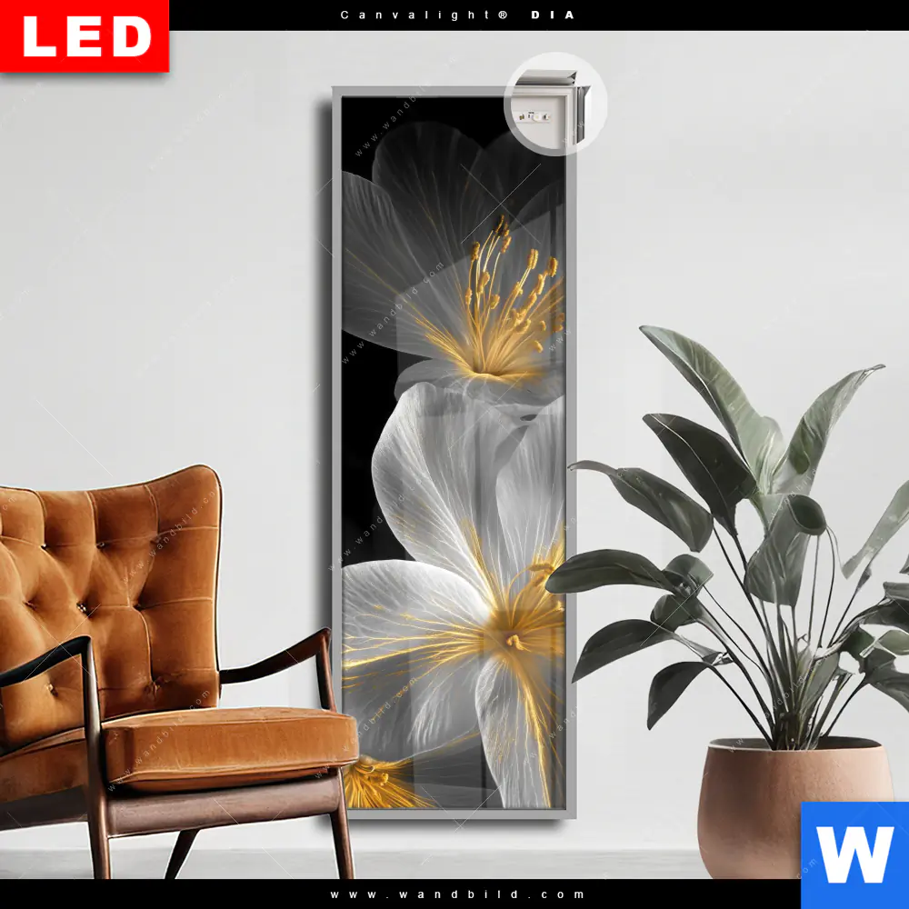 Canvalight® DIA Leuchtbild | Blüten Gold & Weiß | Schmal