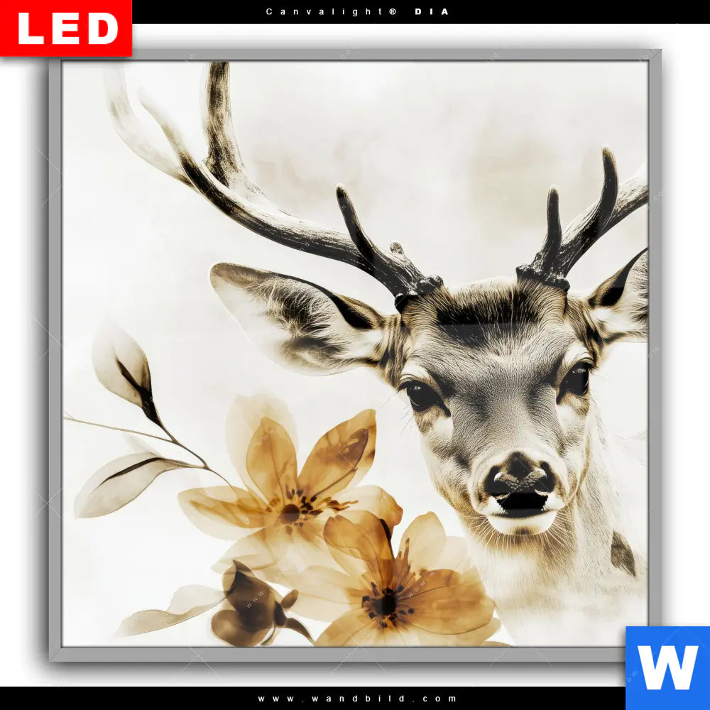 Canvalight® DIA Leuchtbild | Blütenpracht trifft Geweih | Quadrat