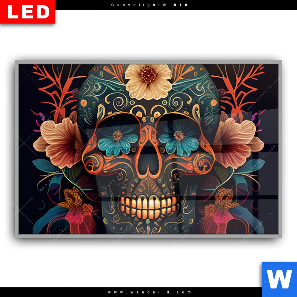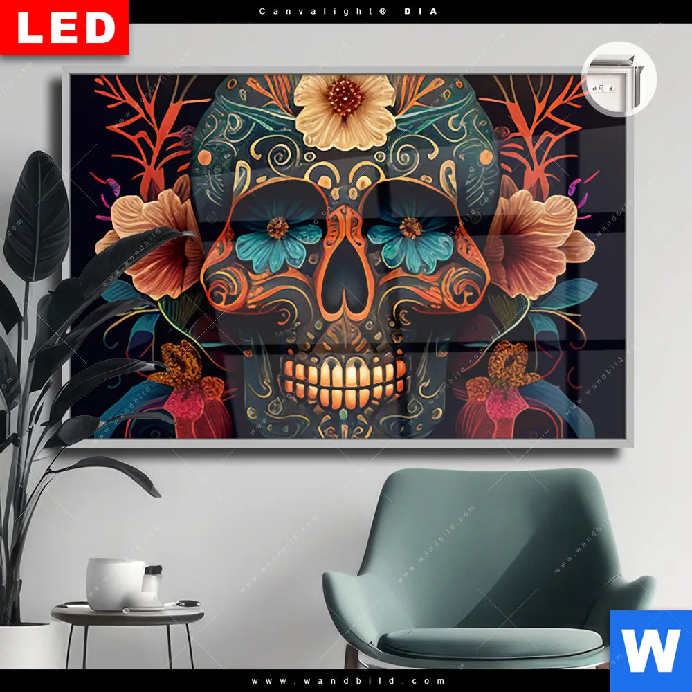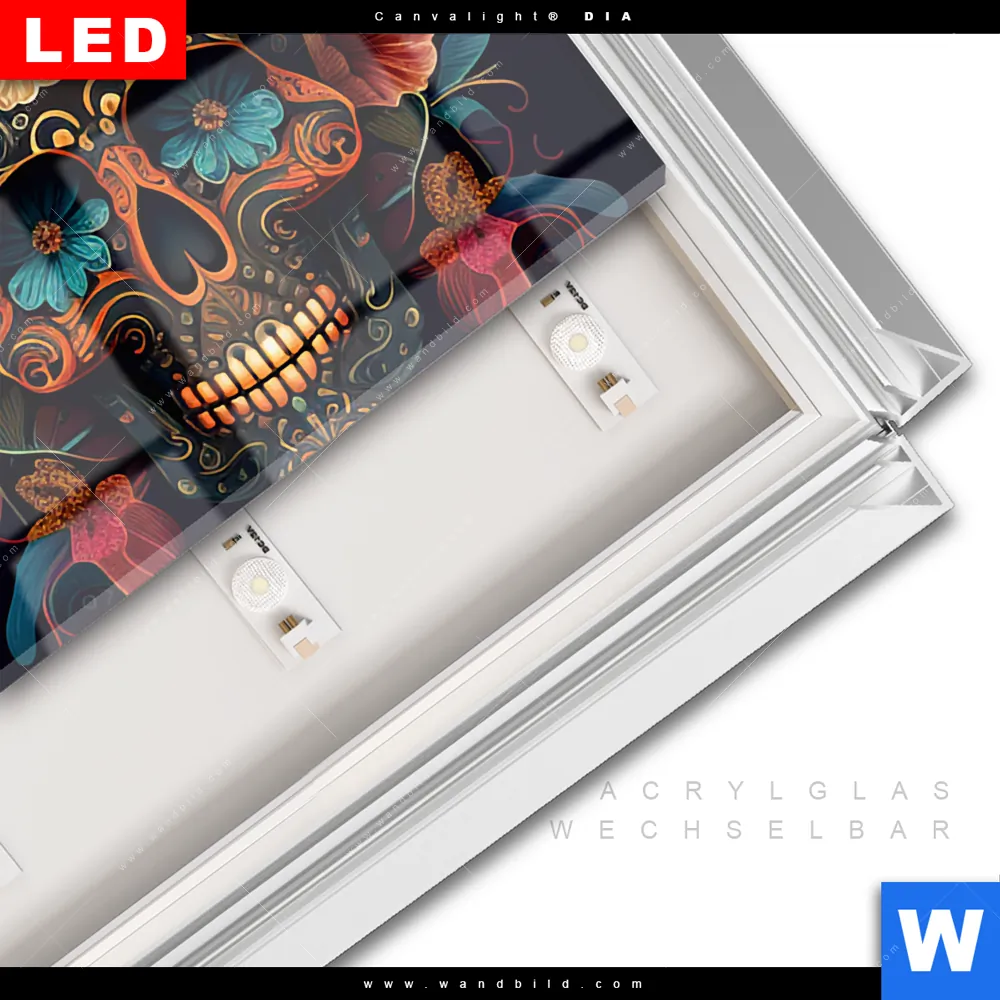 Canvalight® DIA Leuchtbild | Blumenschädel schwarz | Querformat