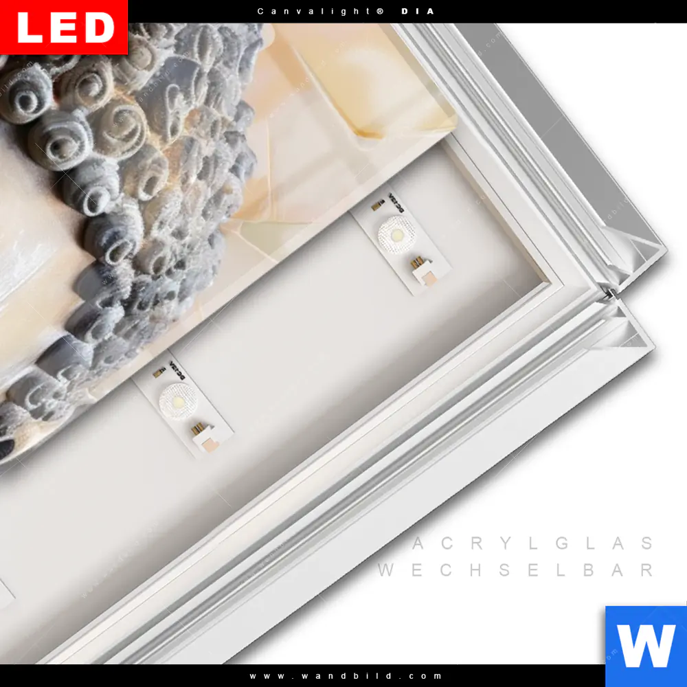 LED-Glasbild mit austauschbarem Acrylglas-Druck (Wechselbild)