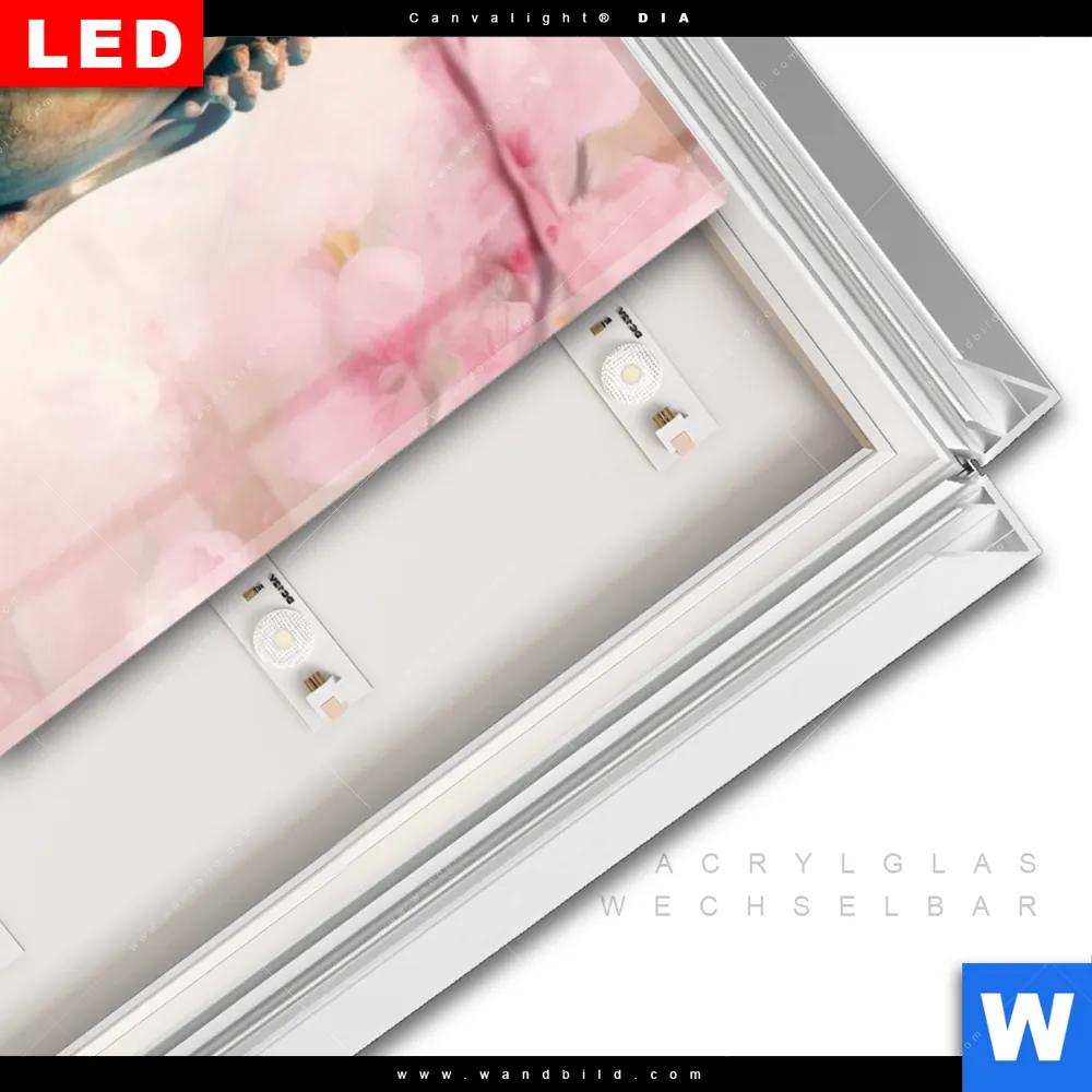 Canvalight® DIA Leuchtbild | Buddha Statue mit Kirschblüten | Hochformat