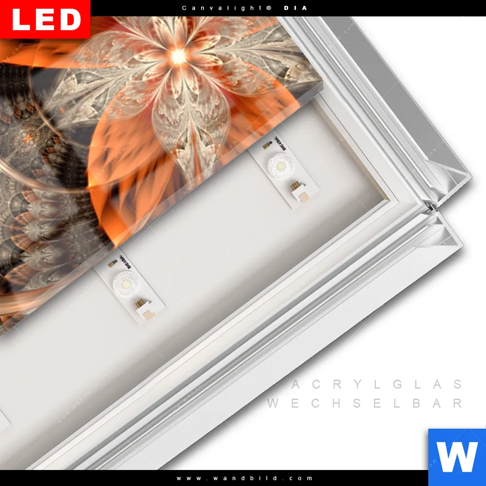 LED-Glasbild mit austauschbarem Acrylglas-Druck (Wechselbild)