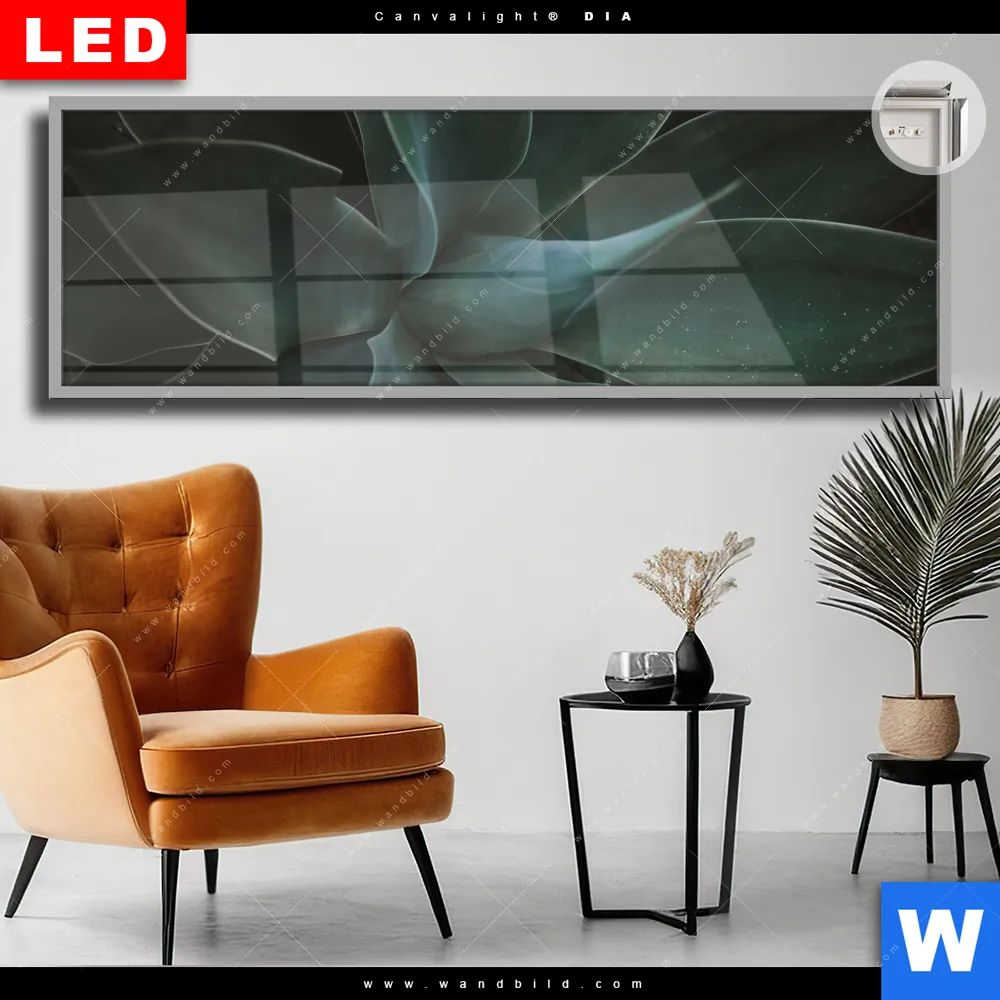 Canvalight® DIA Leuchtbild | Dunkles Agavenblatt | Panorama
