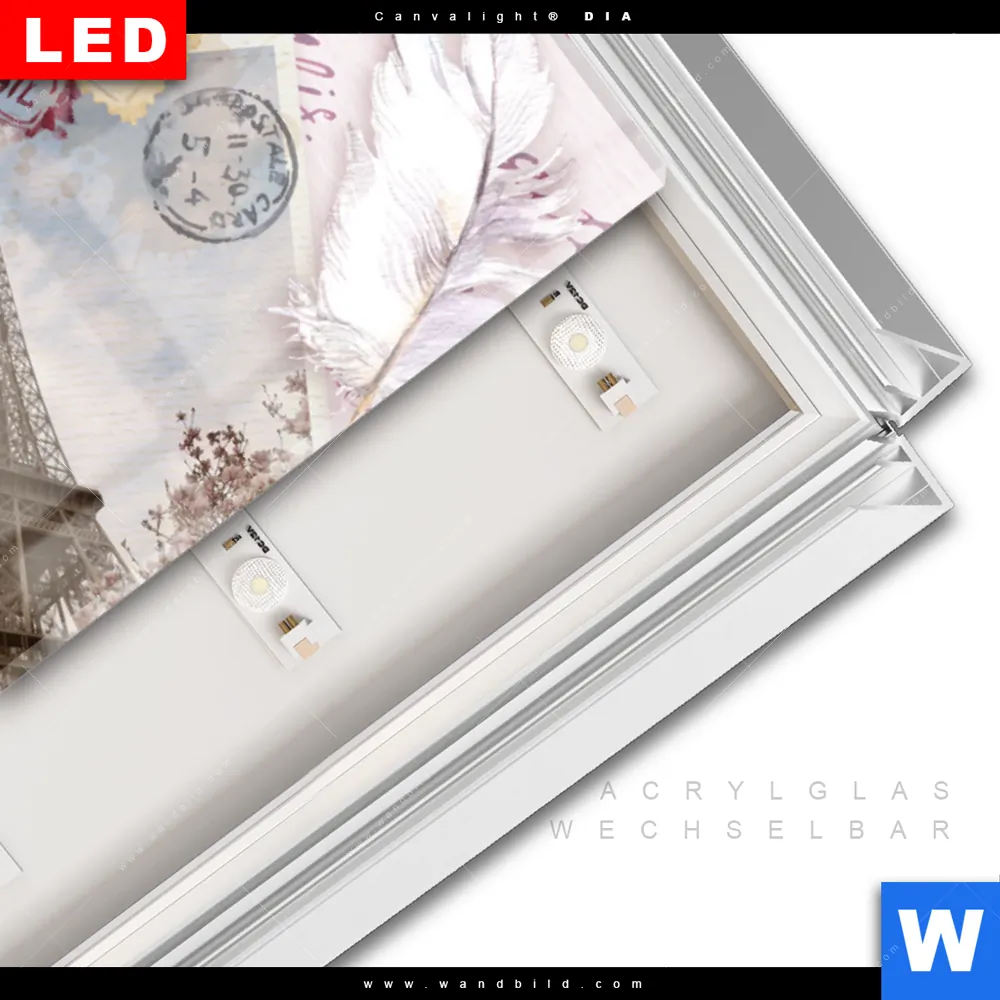LED-Glasbild mit austauschbarem Acrylglas-Druck (Wechselbild)