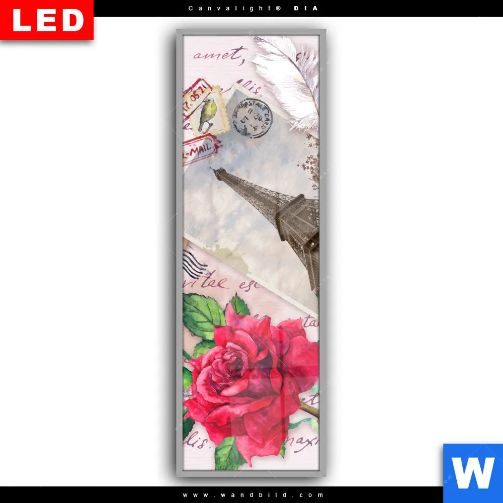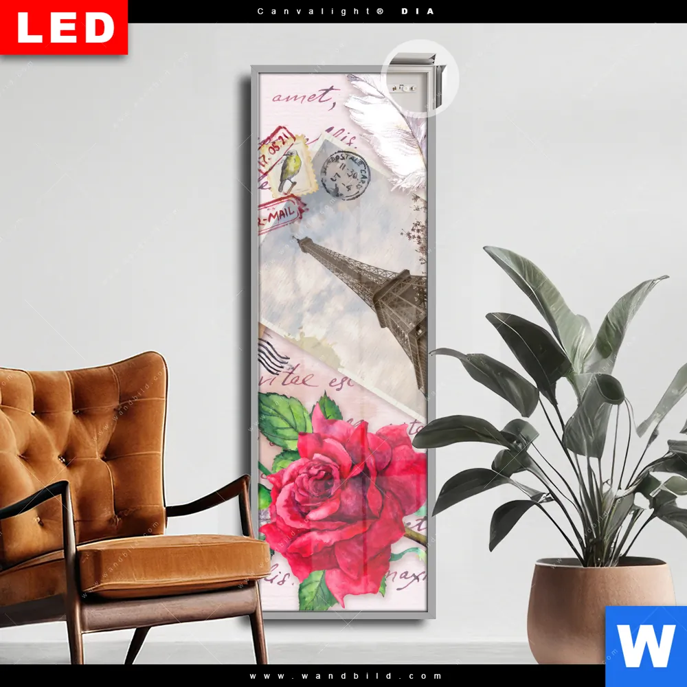 Canvalight® DIA Leuchtbild | Eifelturm & Rosen | Schmal