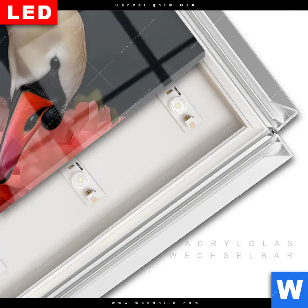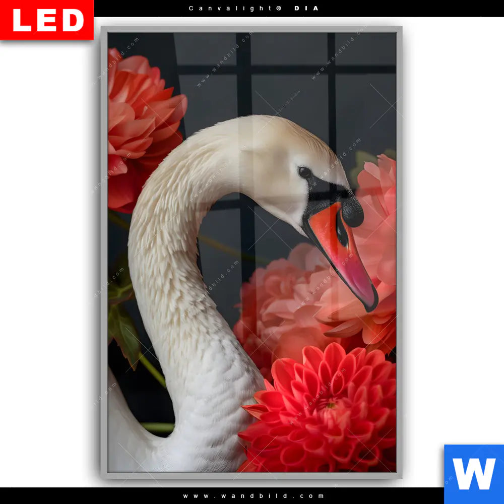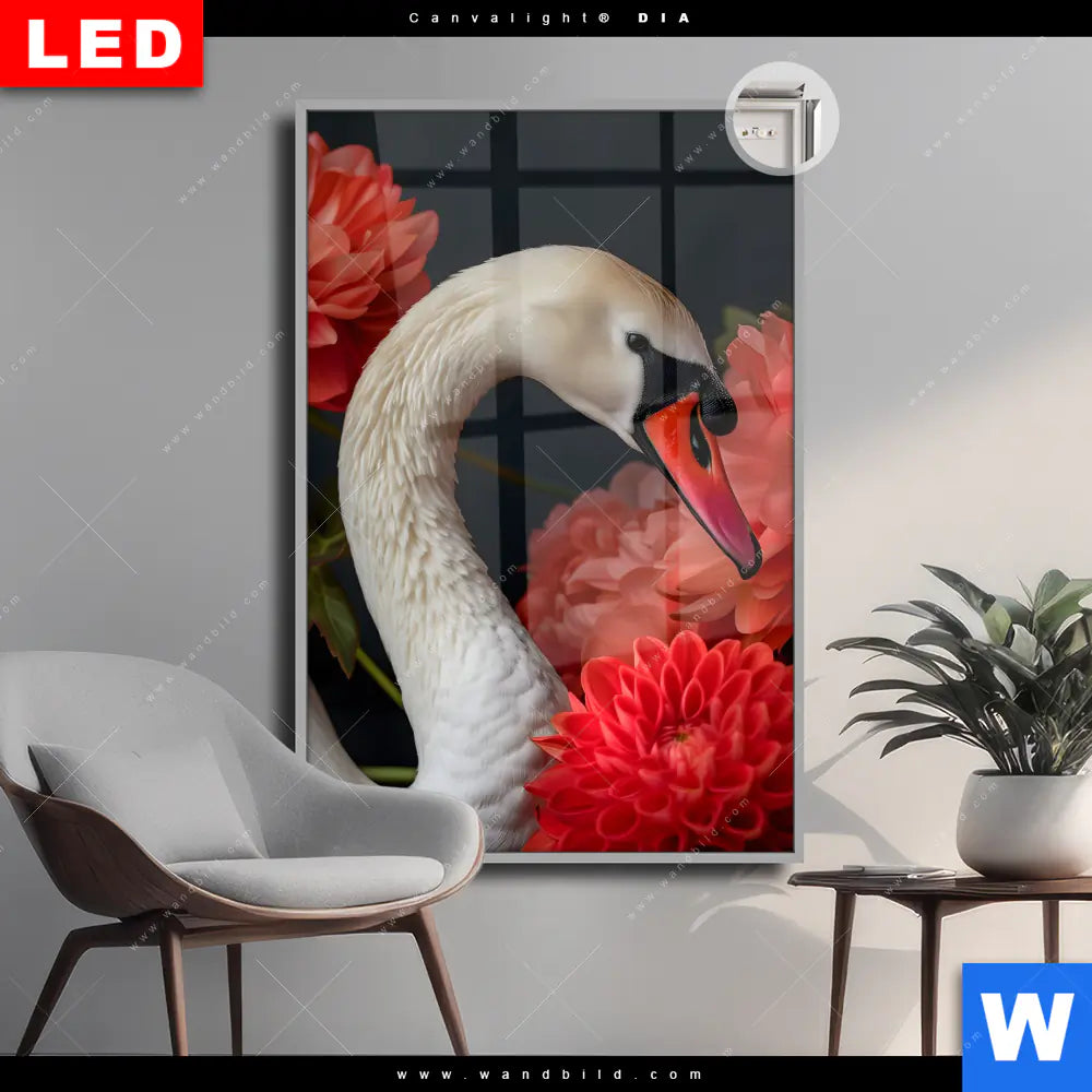Canvalight® DIA Leuchtbild | Eleganter Schwan mit Blumen | Hochformat