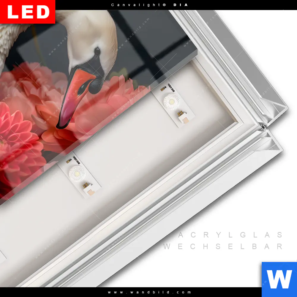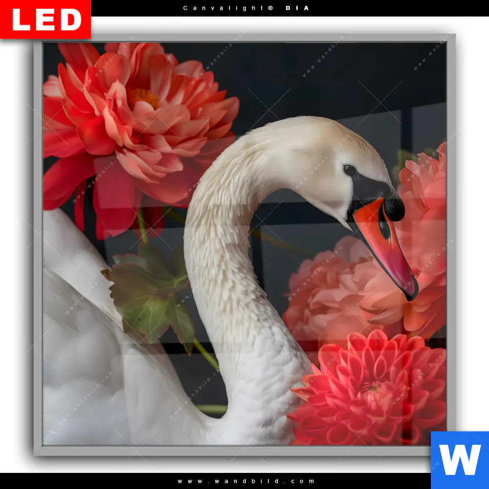 Canvalight® DIA Leuchtbild | Eleganter Schwan mit Blumen | Quadrat
