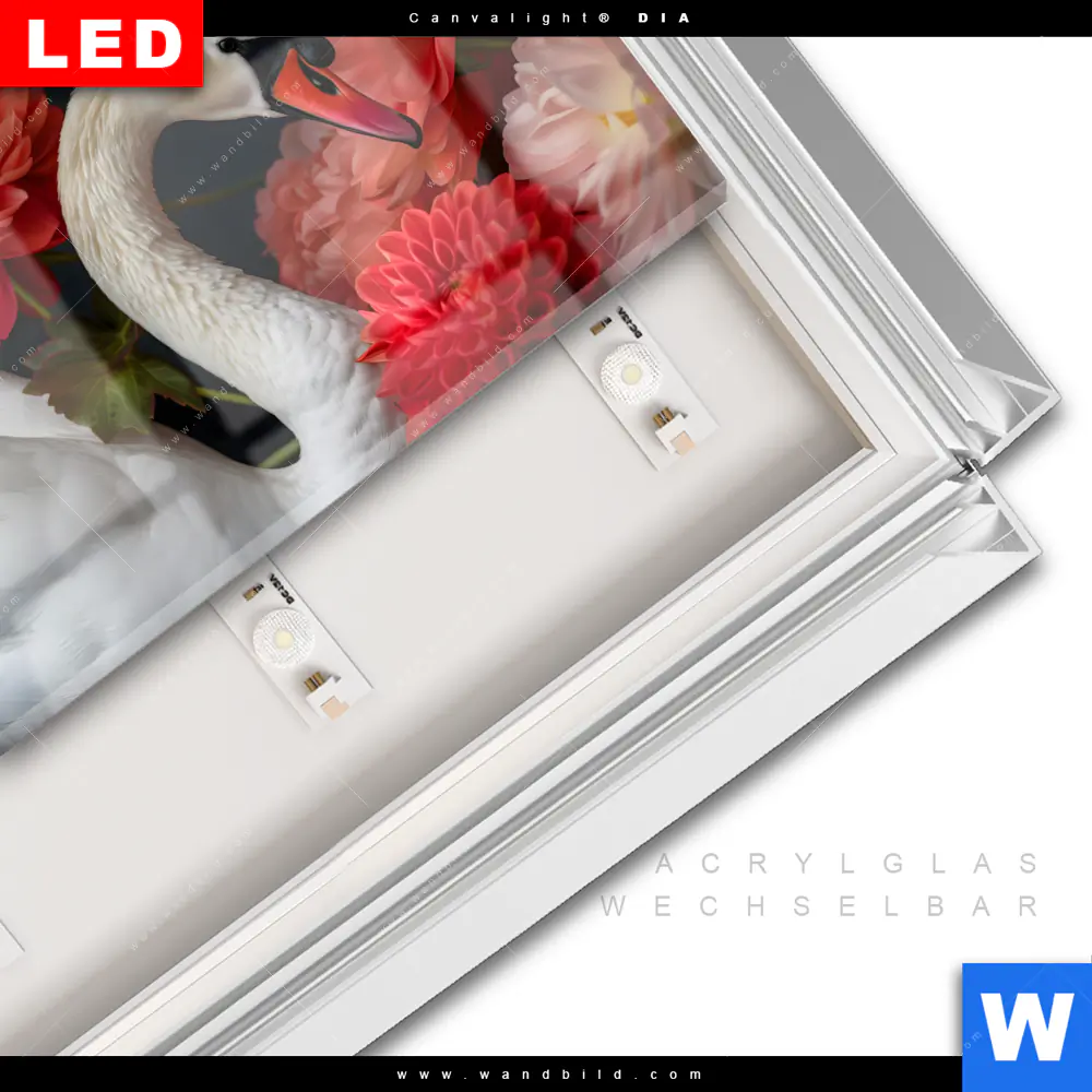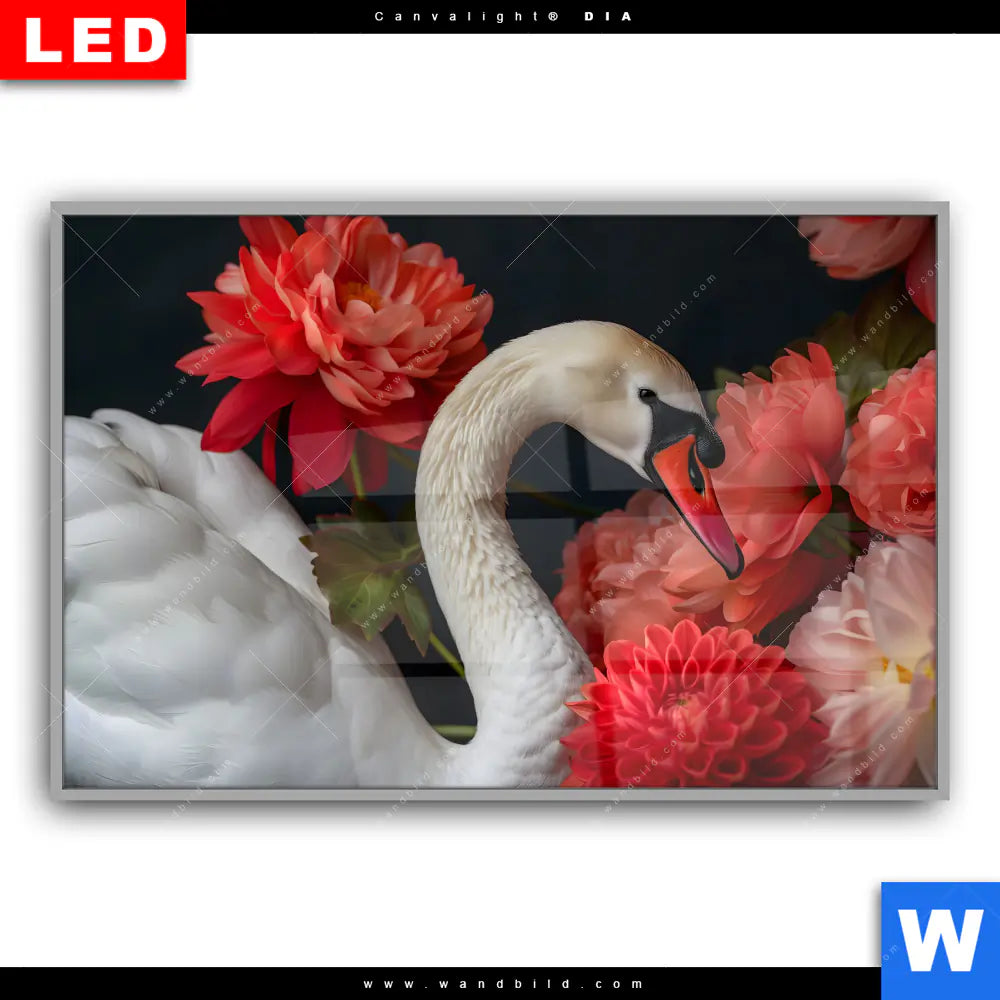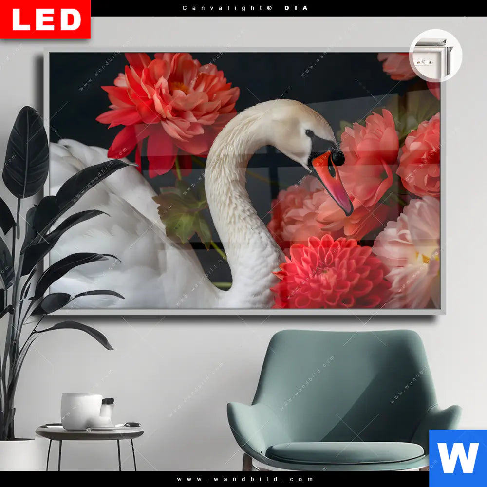 Canvalight® DIA Leuchtbild | Eleganter Schwan mit Blumen | Querformat