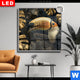 Canvalight® DIA Leuchtbild | Eule und goldene Blätter | Querformat