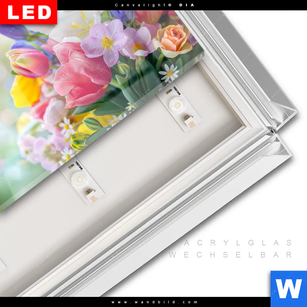 Canvalight® DIA Leuchtbild | Farbenfrohe Frühlingsblüten | Querformat