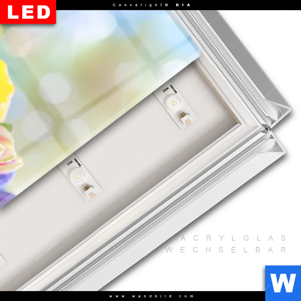 LED-Glasbild mit austauschbarem Acrylglas-Druck (Wechselbild)
