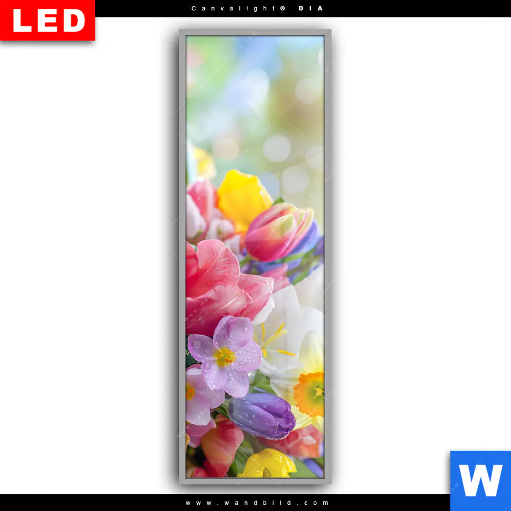 Canvalight® DIA Leuchtbild | Farbenfrohe Frühlingsblüten | Schmal