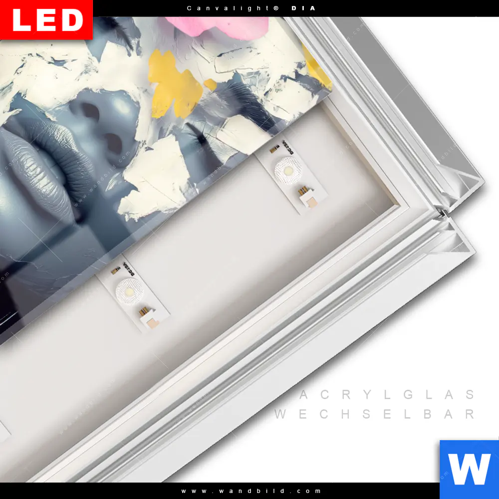 LED-Glasbild mit austauschbarem Acrylglas-Druck (Wechselbild)