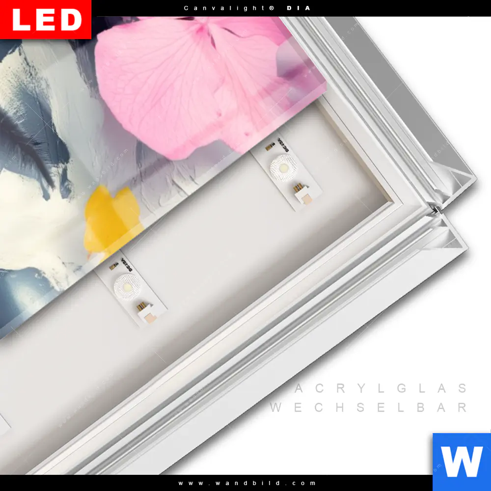 LED-Glasbild mit austauschbarem Acrylglas-Druck (Wechselbild)