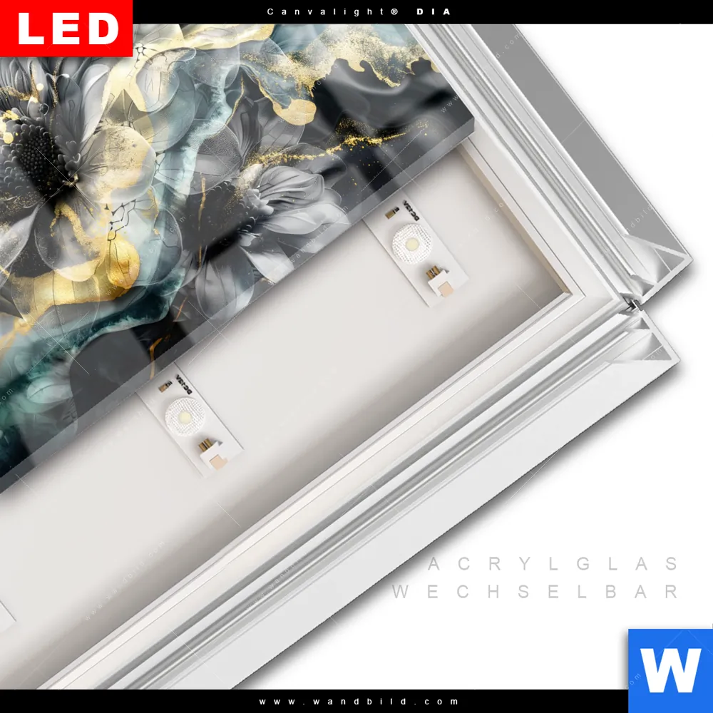LED-Glasbild mit austauschbarem Acrylglas-Druck (Wechselbild)