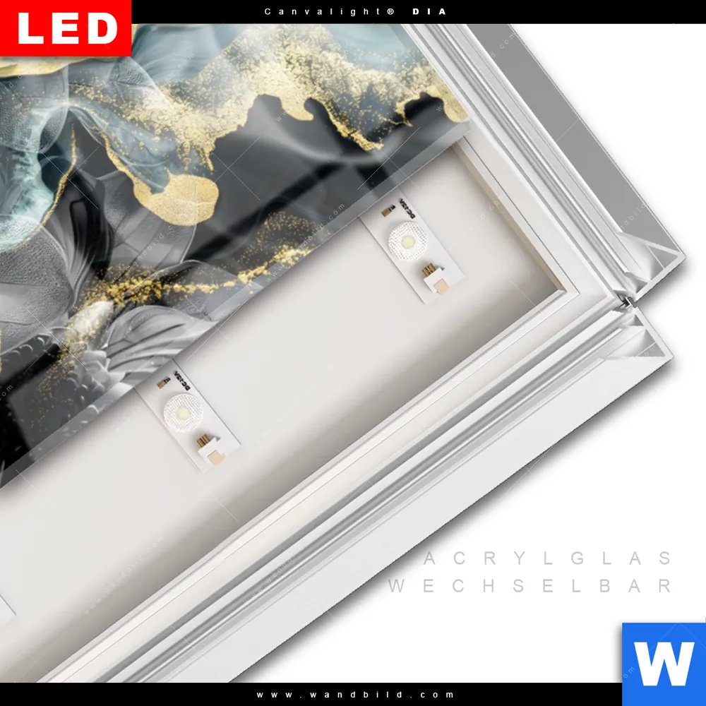 LED-Glasbild mit austauschbarem Acrylglas-Druck (Wechselbild)